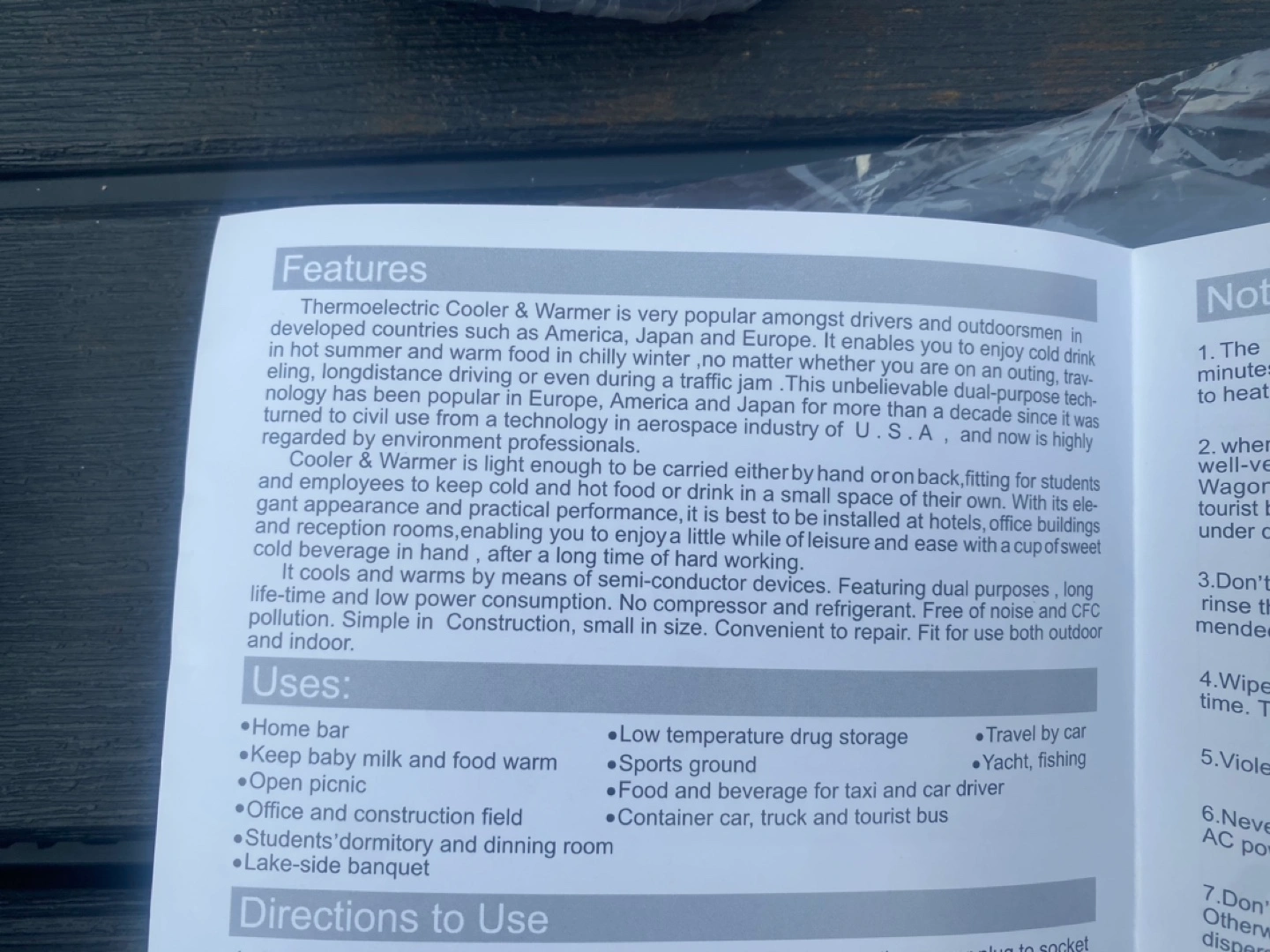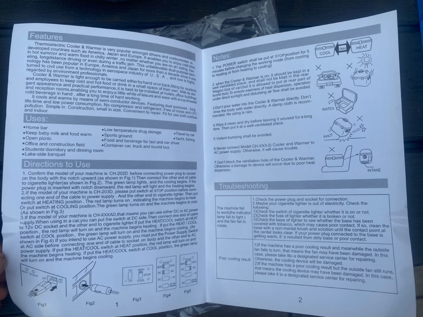 Black cooler and warmer with shoulder strap. Includes adapter and user manual. Plugs into a 12V outlet. Portable for warming your lunches on the go.