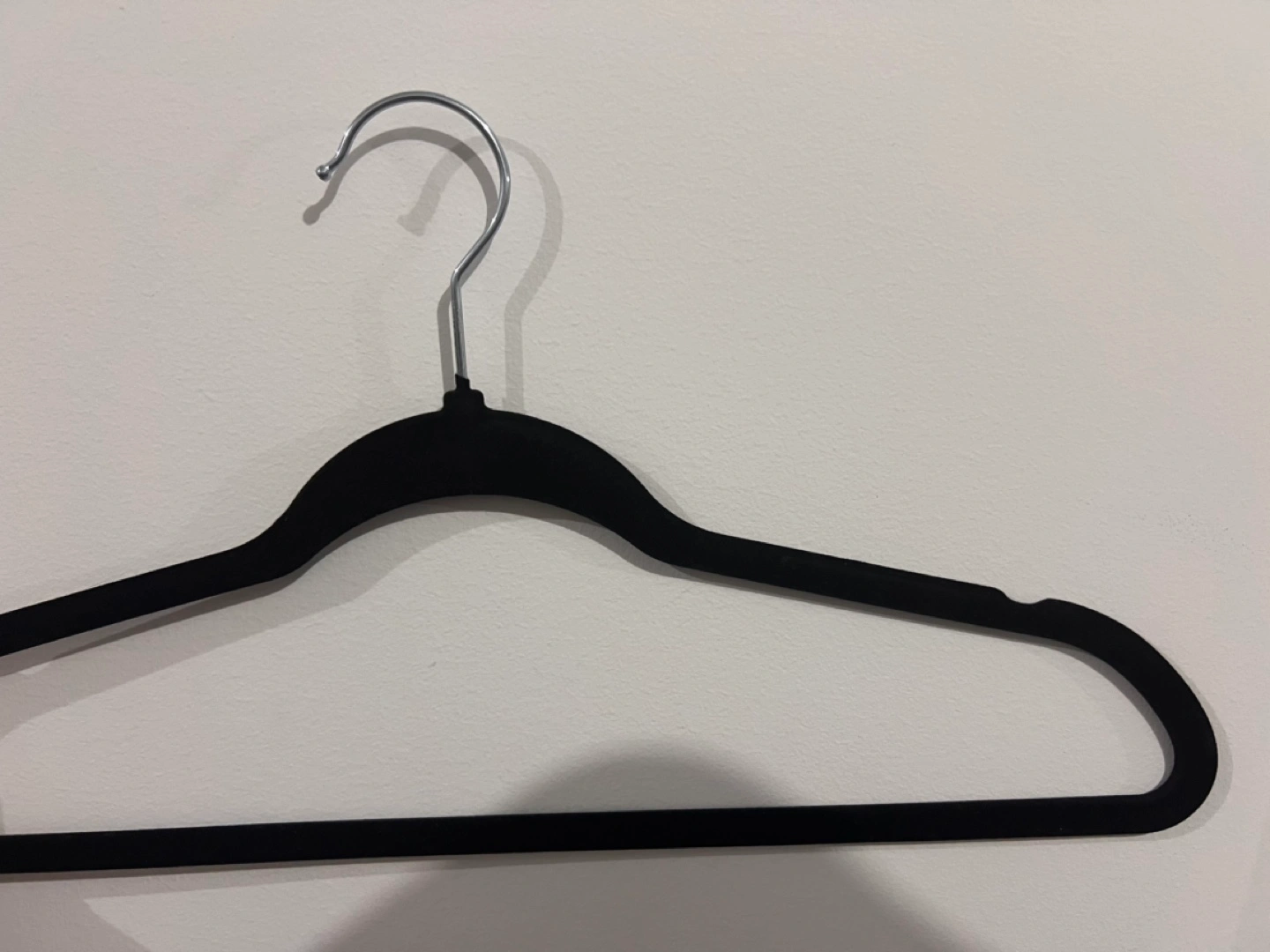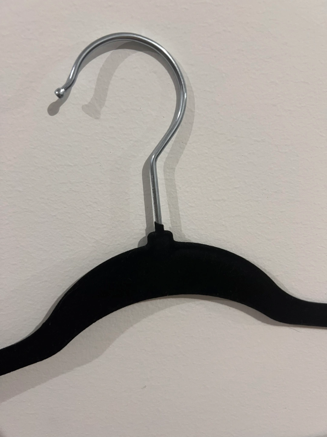 50 black velvet clothes hangers for sale. They’re in new condition and unused, just opened from packaging. Price is for all of them.