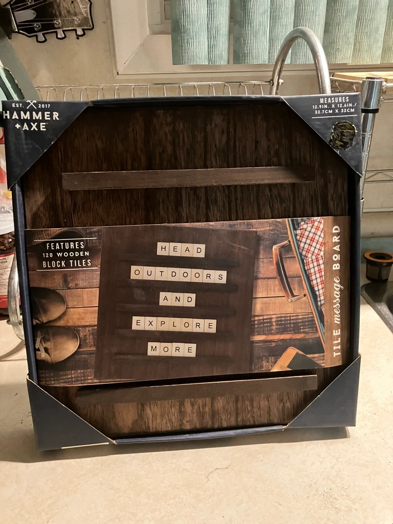 Tile message board with 120 wooden tiles. A stylish display for custom sayings, notes, and more. Add your personality to any shelf or wall. Perfect for sophisticated events or party signage. Please take a look at more of my ad.