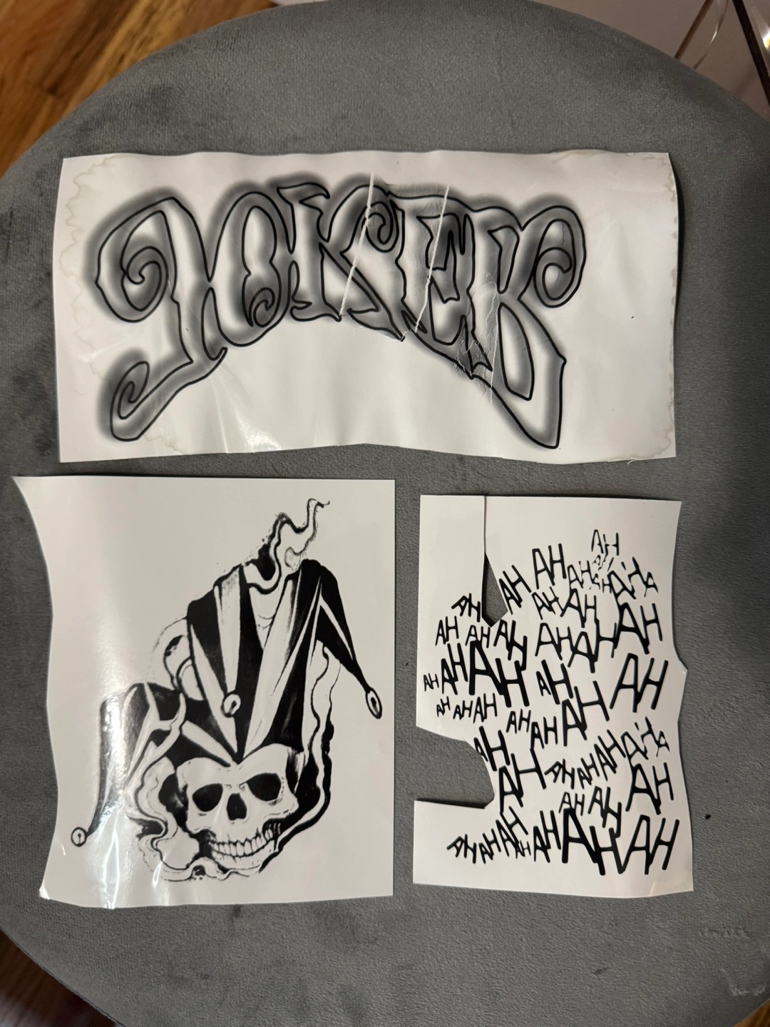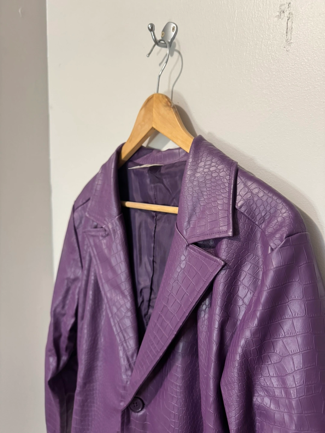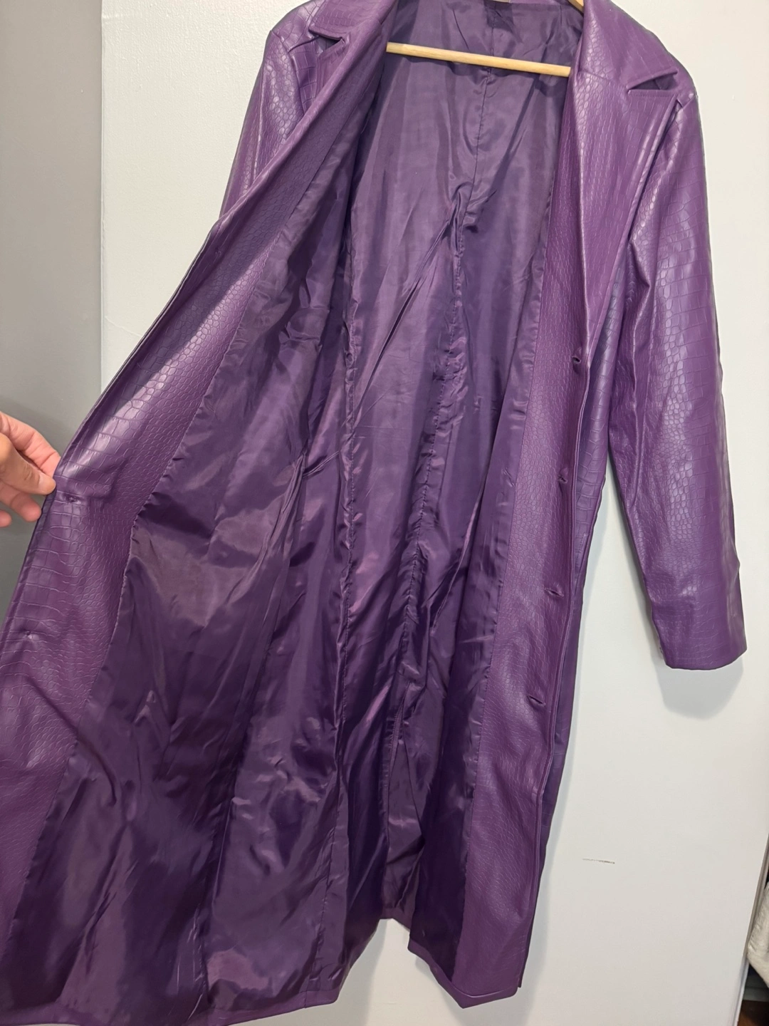 This purple Joker jacket from Suicide Squad is in excellent condition, worn only once. The costume includes the jacket and a set of temporary tattoos, though please note that the tattoo set is incomplete and one of the three is slightly damaged but should still work. This jacket is a perfect piece for any cosplay or Halloween event.