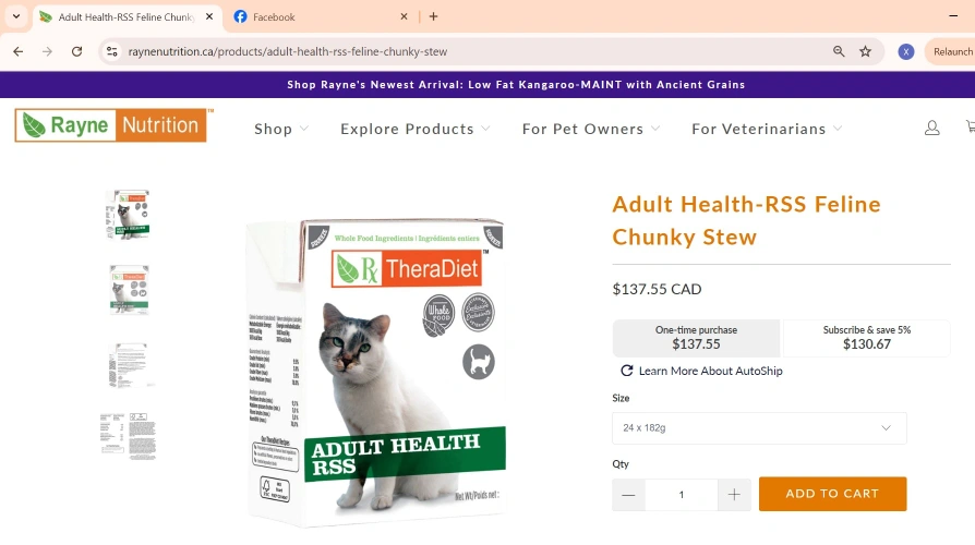 NEW 6 packs of Rayne URINARY/IBD prescription WET CAT FOOD