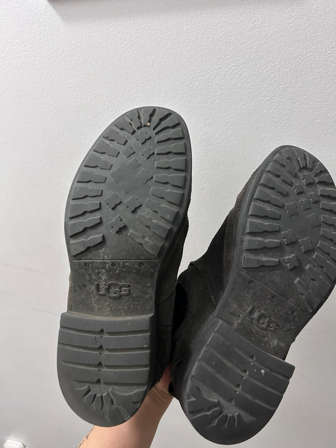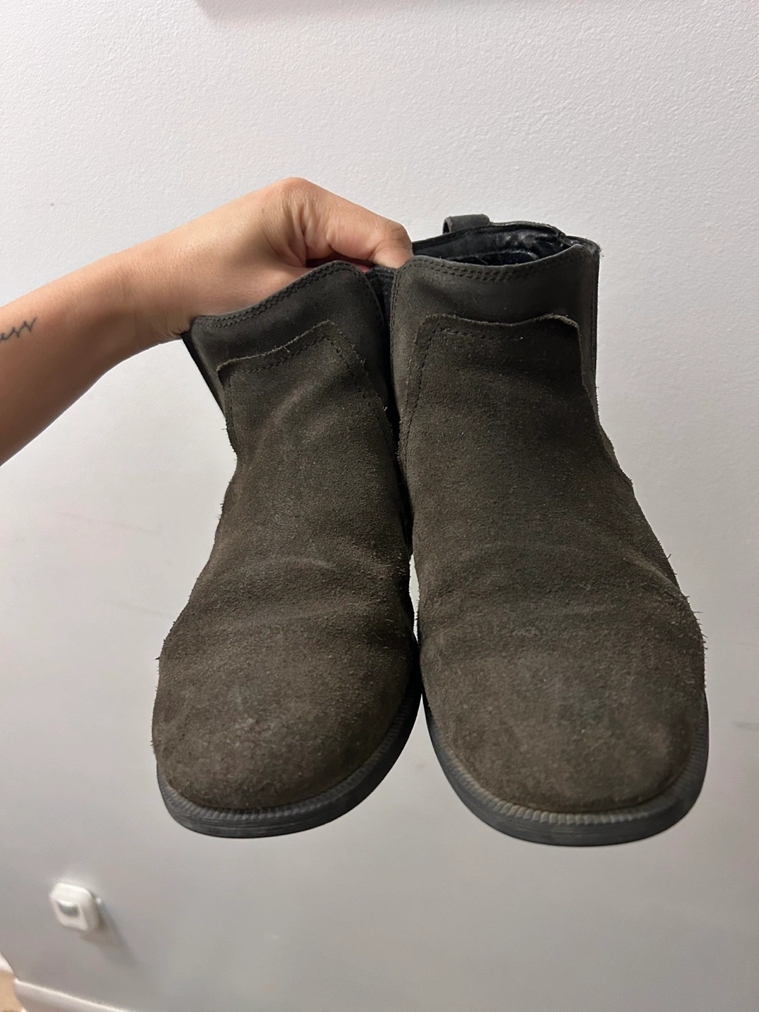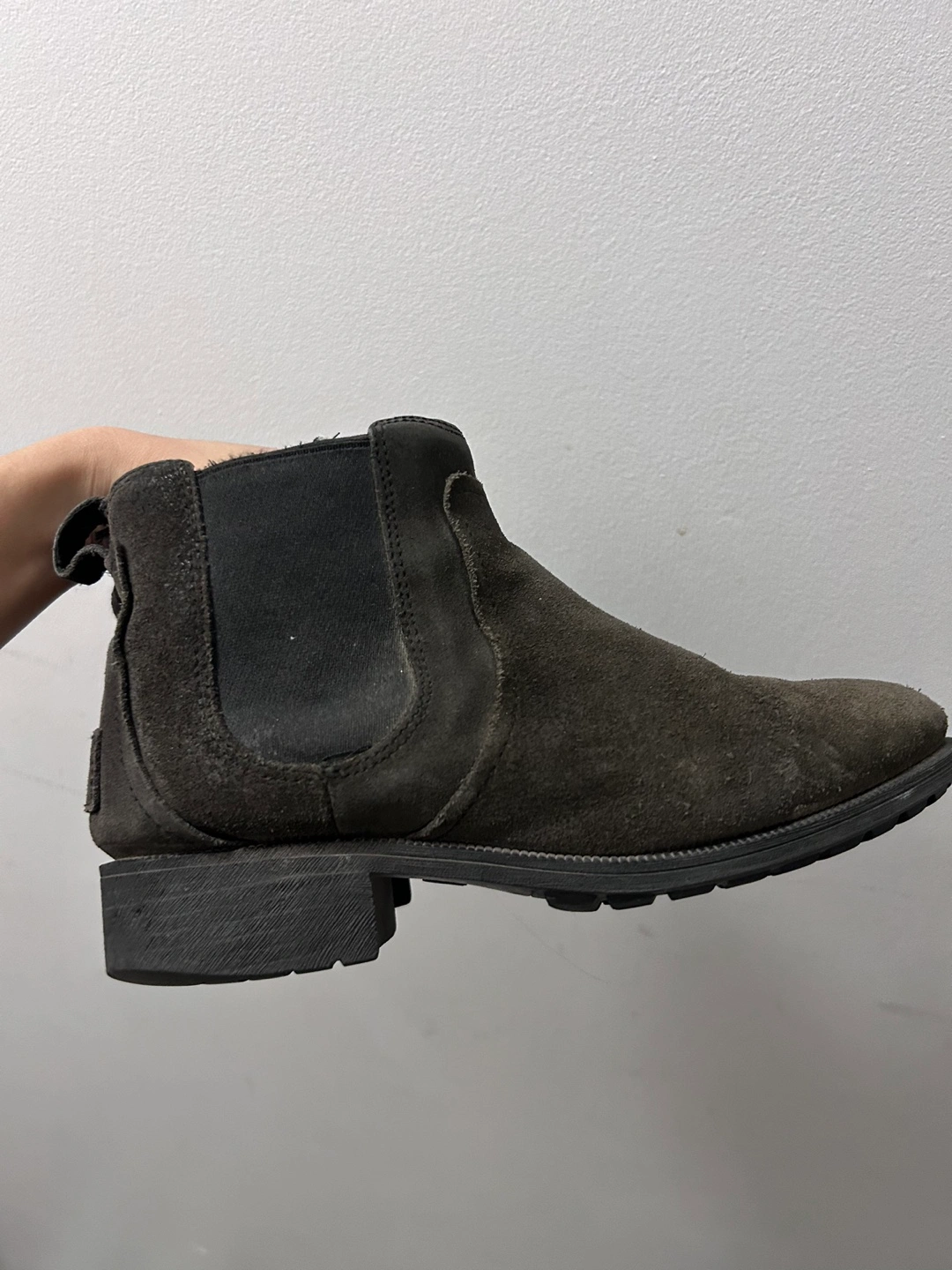 Suede Chelsea boots with a low block heel. Elastic side panels. Good condition. WATERPROOF.