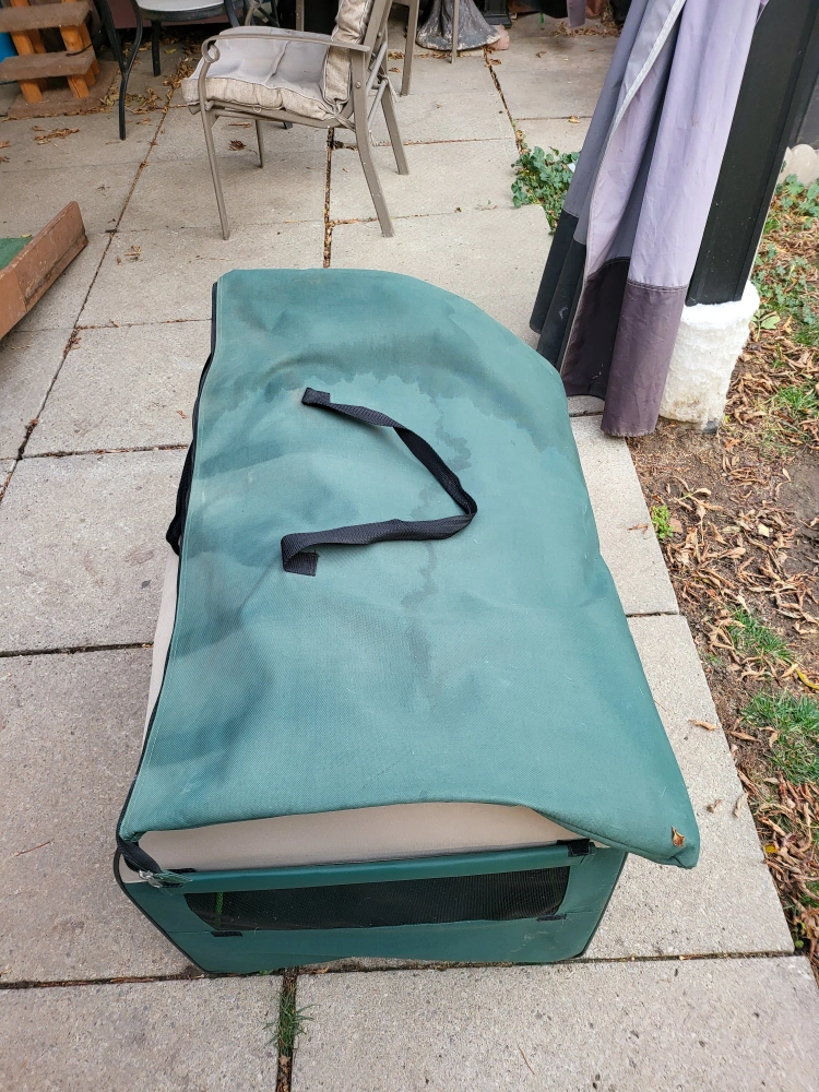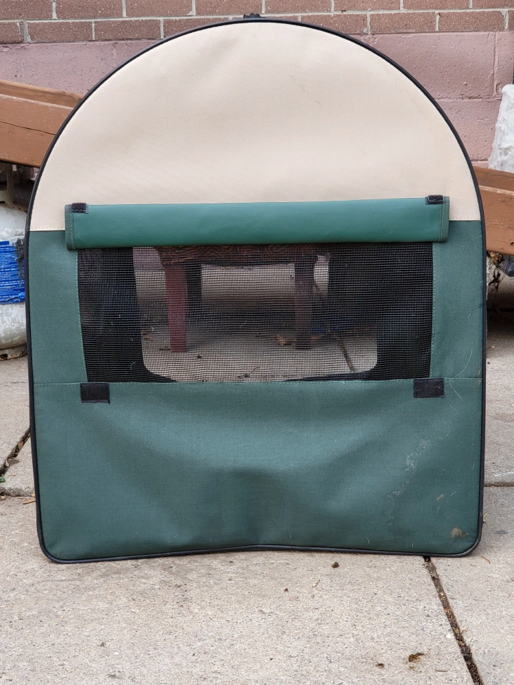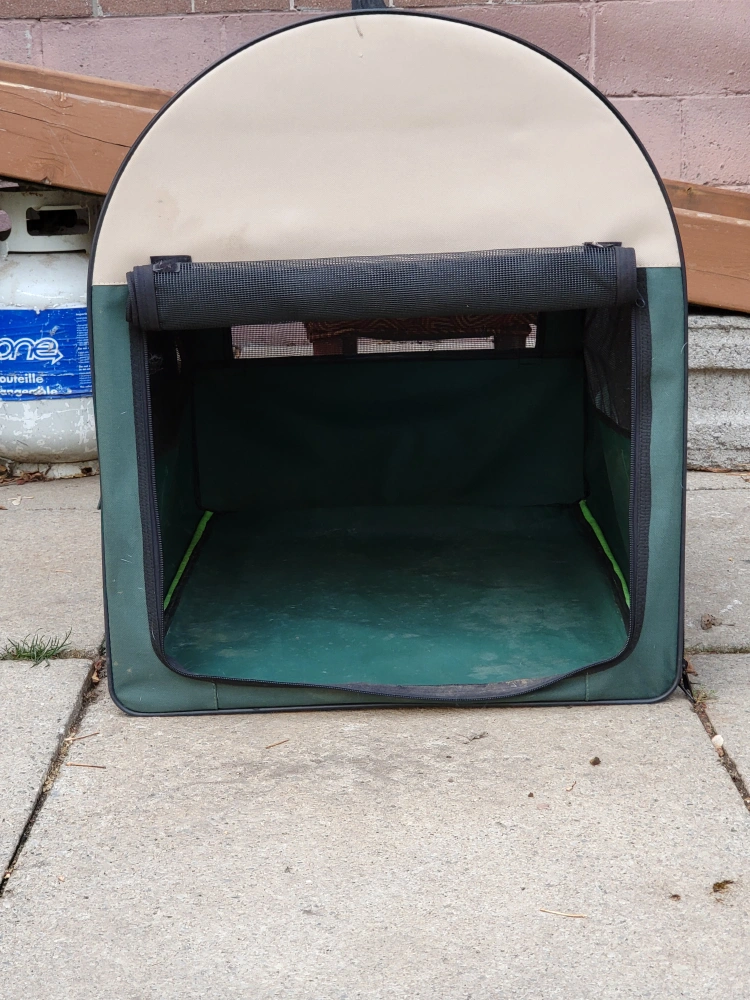 Collapsible pet travel crate. Great for transporting your furry friend.