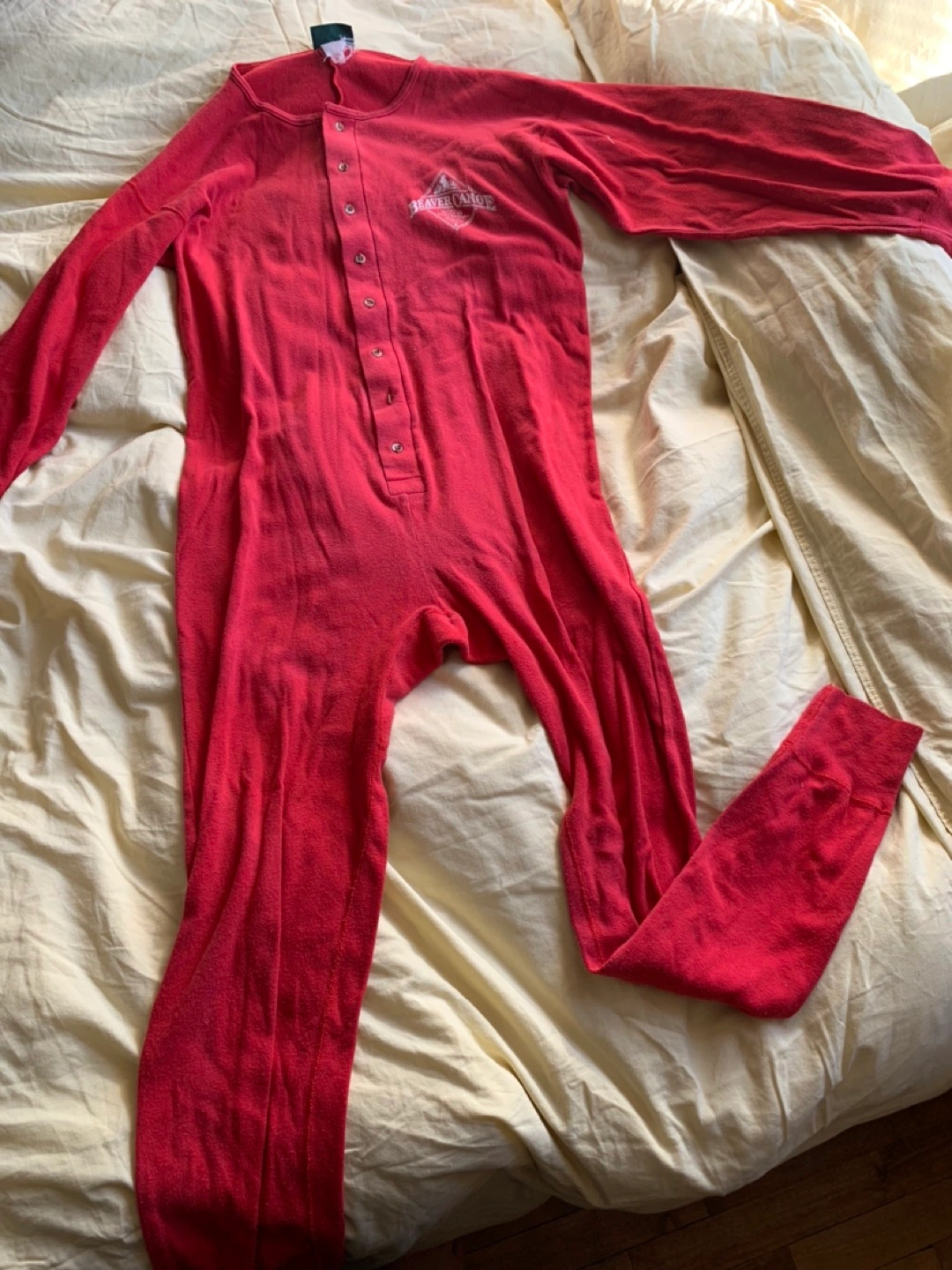 Red vintage beaver canoe unisex onesie. Fits a 5’6’’-5’8’’ individual. Good condition besides mild fading and pilling.