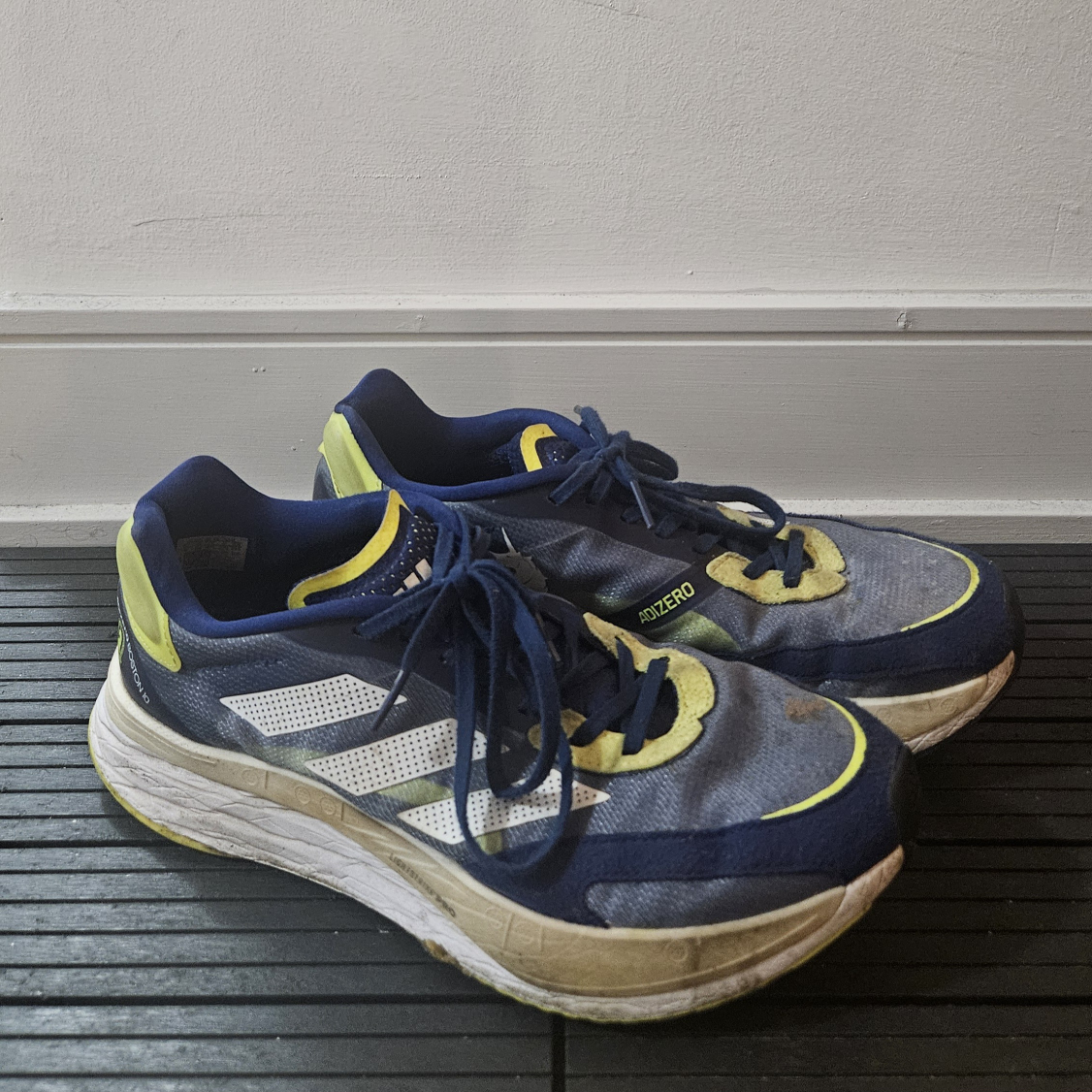 1 / 31 / 3Buy & SellAdidas Adizero Running ShoesAdidas Adizero Running Shoes$25Blue and yellow running shoes. Okay condition. Size 8.5ConditionOkaySize8.5BrandAdidasWHERE TO MEETWellesley StationView MapSELLERJose ZepedaChurch and Wellesley11911 reviews0 chats·0 favorites·53 viewsSEND CHAT TO SELLERHi Jose Zepeda! I’m interested in your listing.Hi Jose Zepeda! I’m interested in your listing.Get the Karrot app to chatSign In to chat