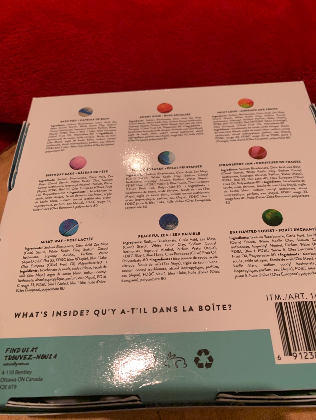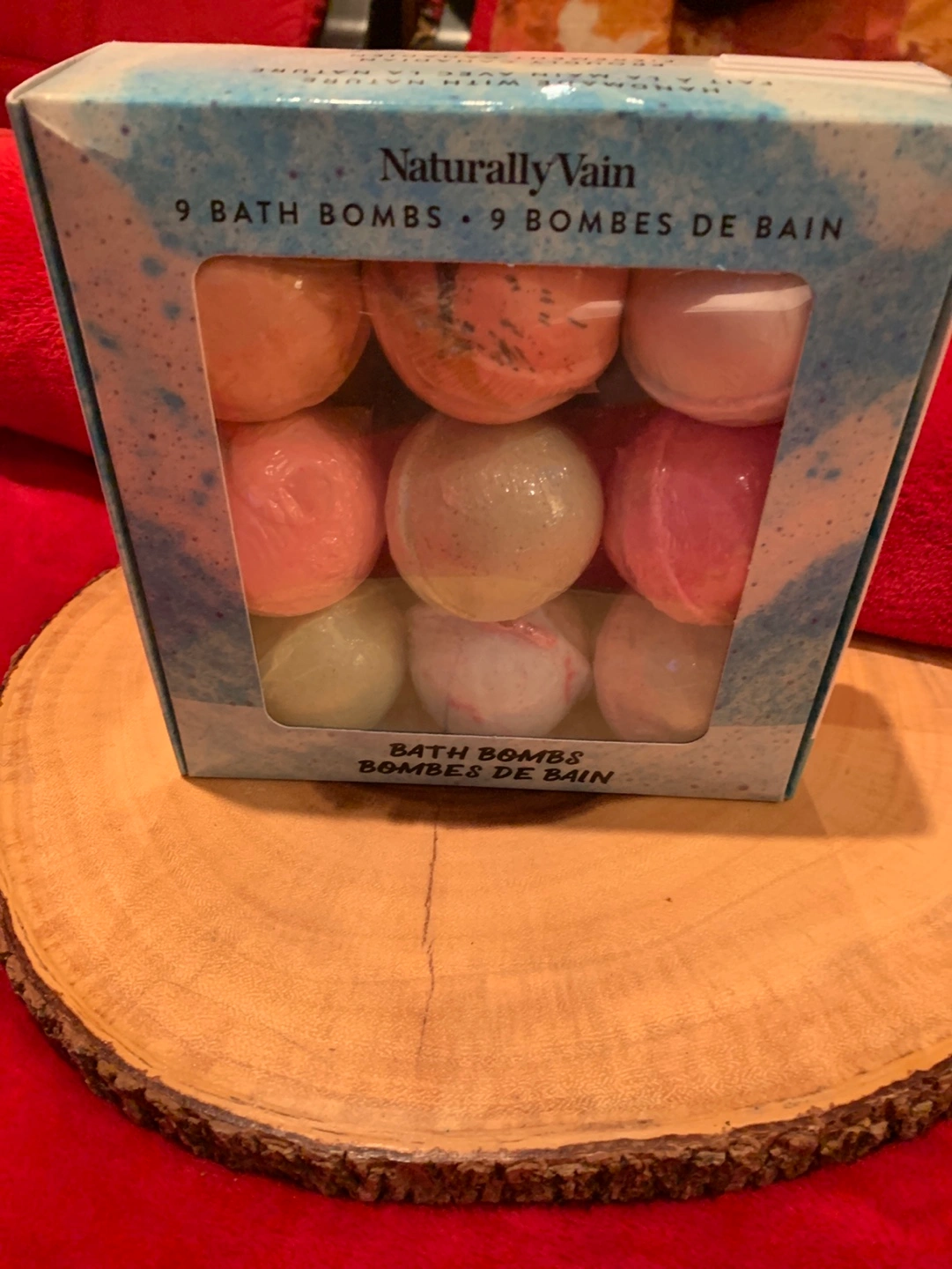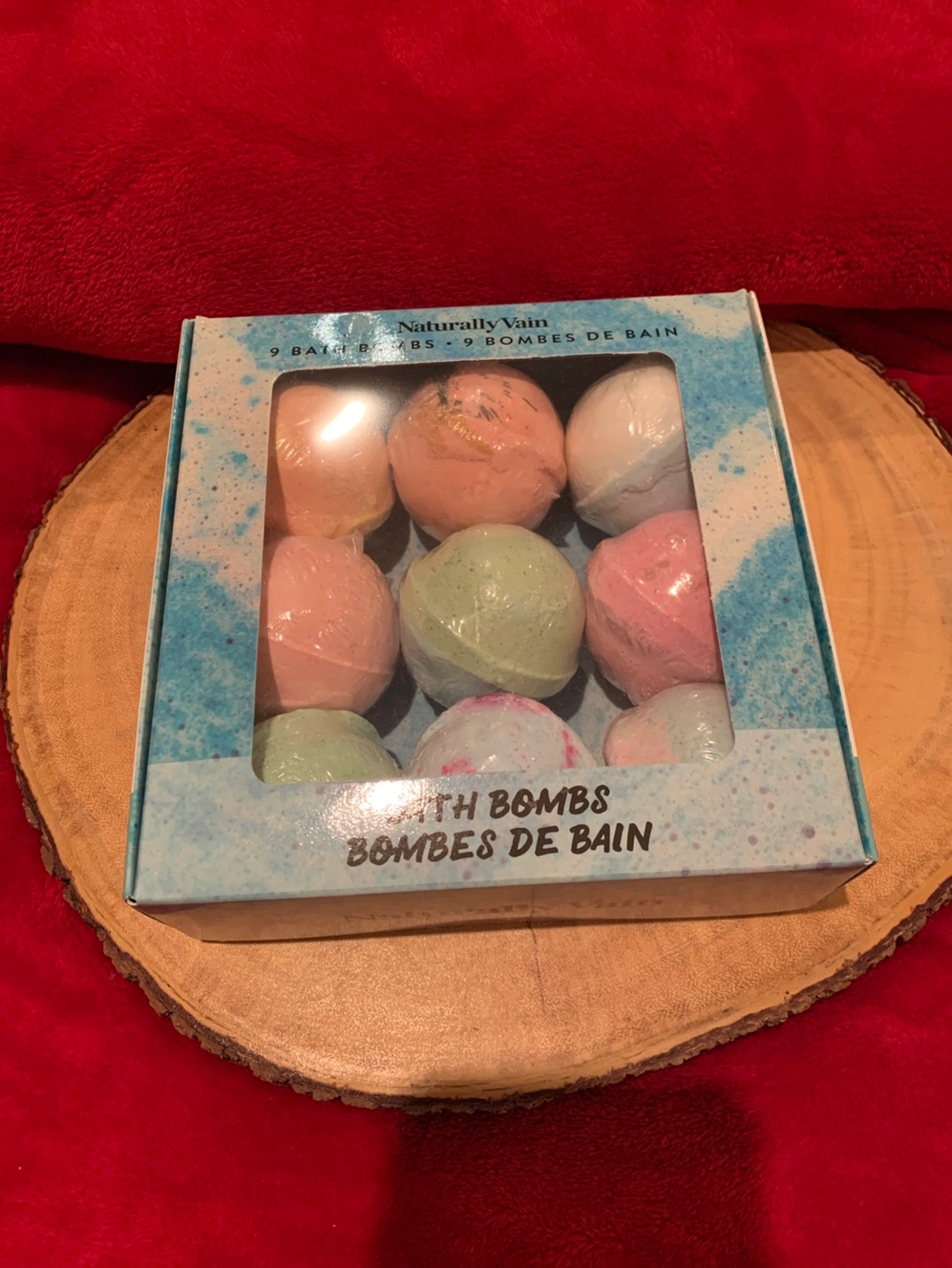 A lovely new package of nine bath bombs ready to dissolve in a luxurious bath. There are nine wonderful scents to relax with. A bath bomb, a book and a cup of coffee or tea will help you relax this winter. Makes for a great gift for you or a friend!