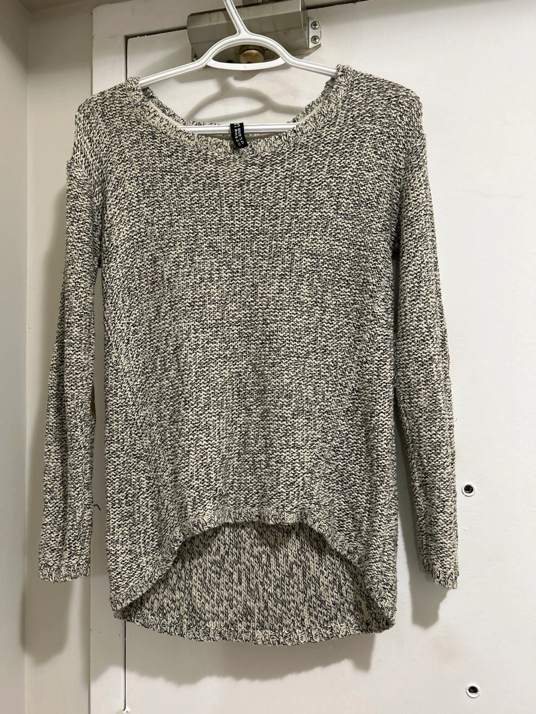 Pick up only Long-sleeved sweater with a round neckline and a high-low hem.