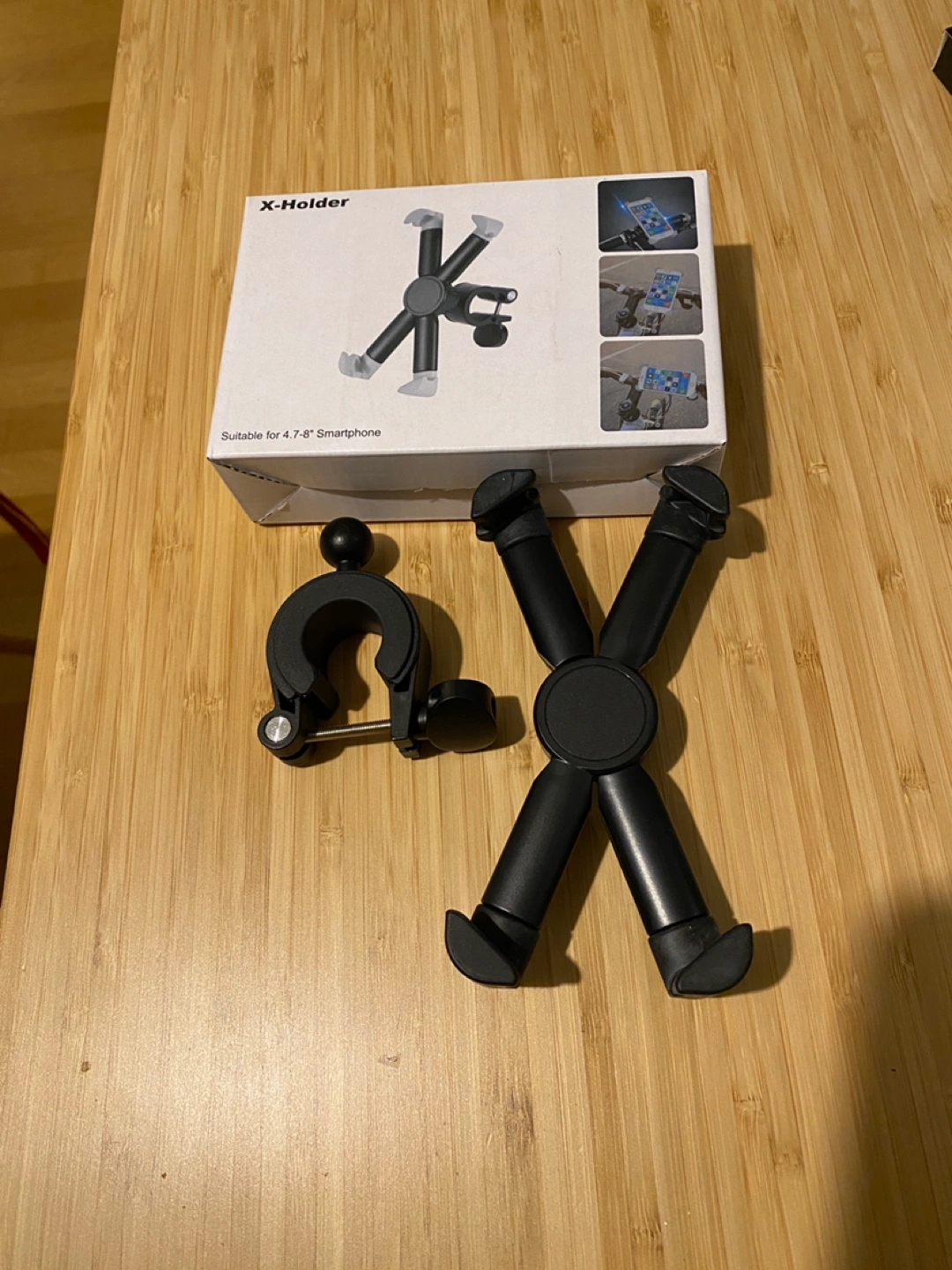 "Fully adjustable ball joint adapter with 360 degree rotation for best-viewing angle. With a strong, sturdy, and safe design, it is comfortable and reliable to use. The holding clips with soft rubber pads securely hold devices without scratching. Compatible with 4.7-7.8" smartphones, GPS and other mobile devices. Fit bicycle and motorcycle handlebars."