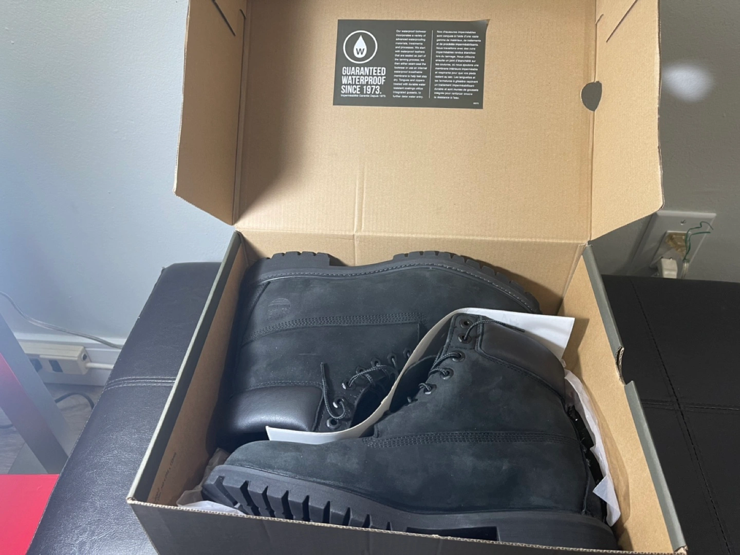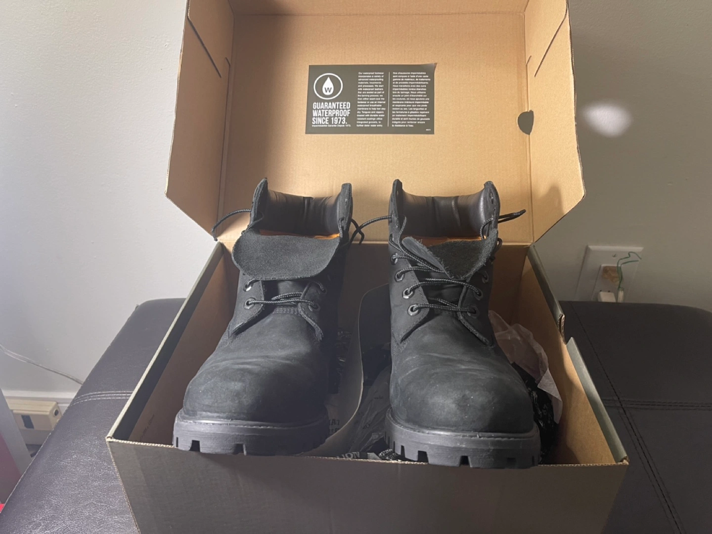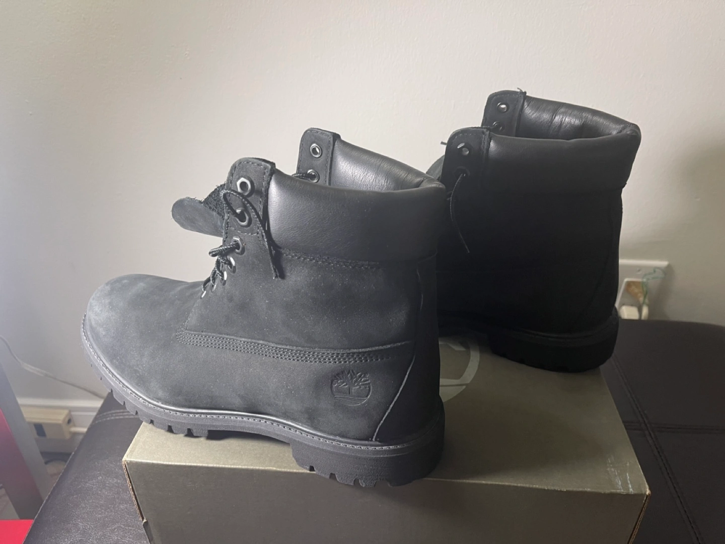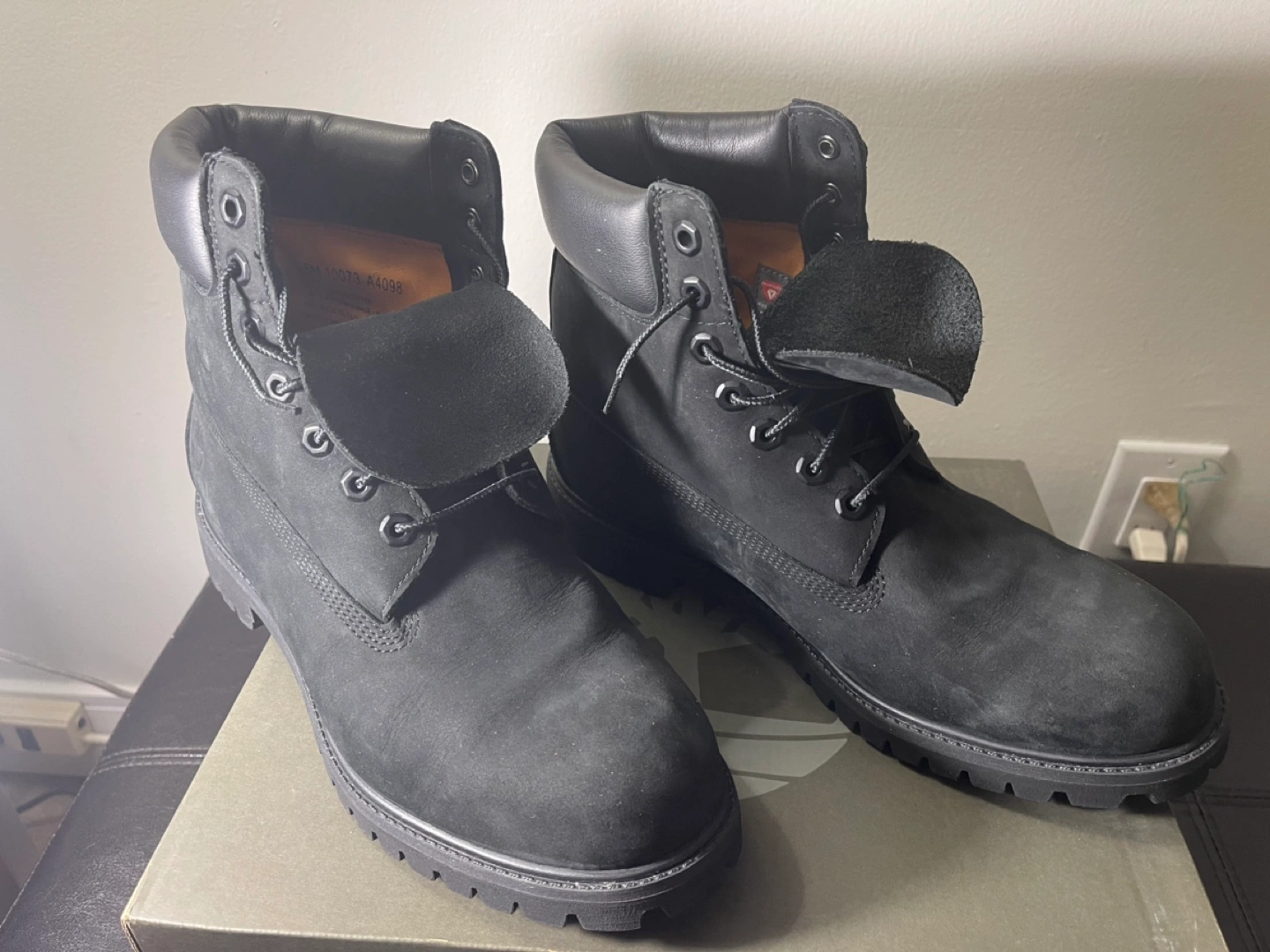Black nubuck leather boots. Size 10.5. In original box.