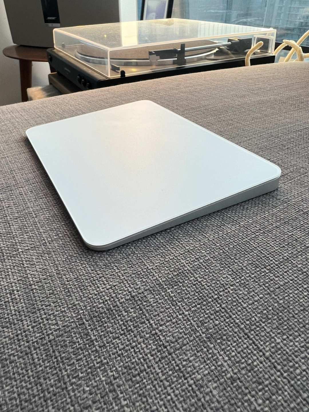 White, Bluetooth trackpad. Works perfectly. Lightning Version, not USB-C.