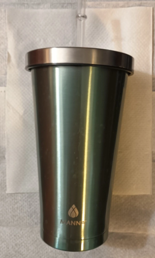 1000+Stainless steel tumbler with lid and straw. Green colour.
