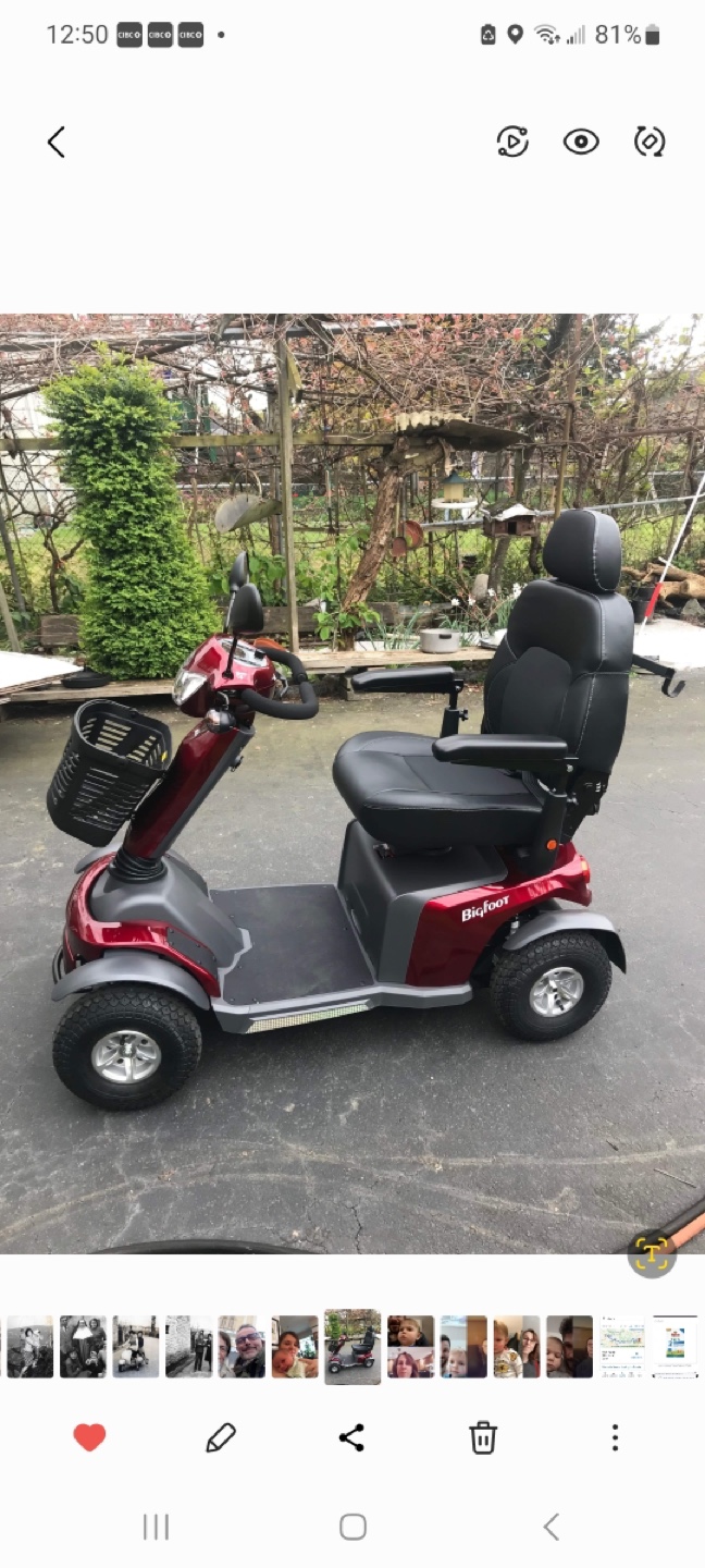 1 / 31 / 3Buy & SellBigfoot S846 Electric ScooterBigfoot S846 Electric Scooter$1,500Electric scooter. Red. Has basket, adjustable seat, and comes with a manual.ConditionLike newWHERE TO MEETKensington Cedar CottageView MapSELLERSabinaKensington Cedar Cottage12011 reviews0 chats·0 favorites·23 viewsSEND CHAT TO SELLERHi Sabina! I’m interested in your listing.Hi Sabina! I’m interested in your listing.Get the Karrot app to chatSign In to chat