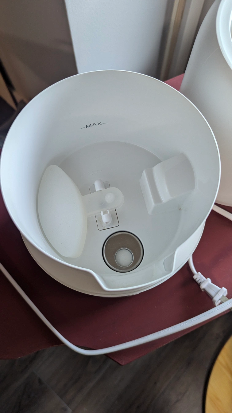 Condition: like new since it's lightly used. Slight yellow deposit in the upper tank due to essential oil (partner forgot it's supposed to be added to bottom tank instead so take note!)