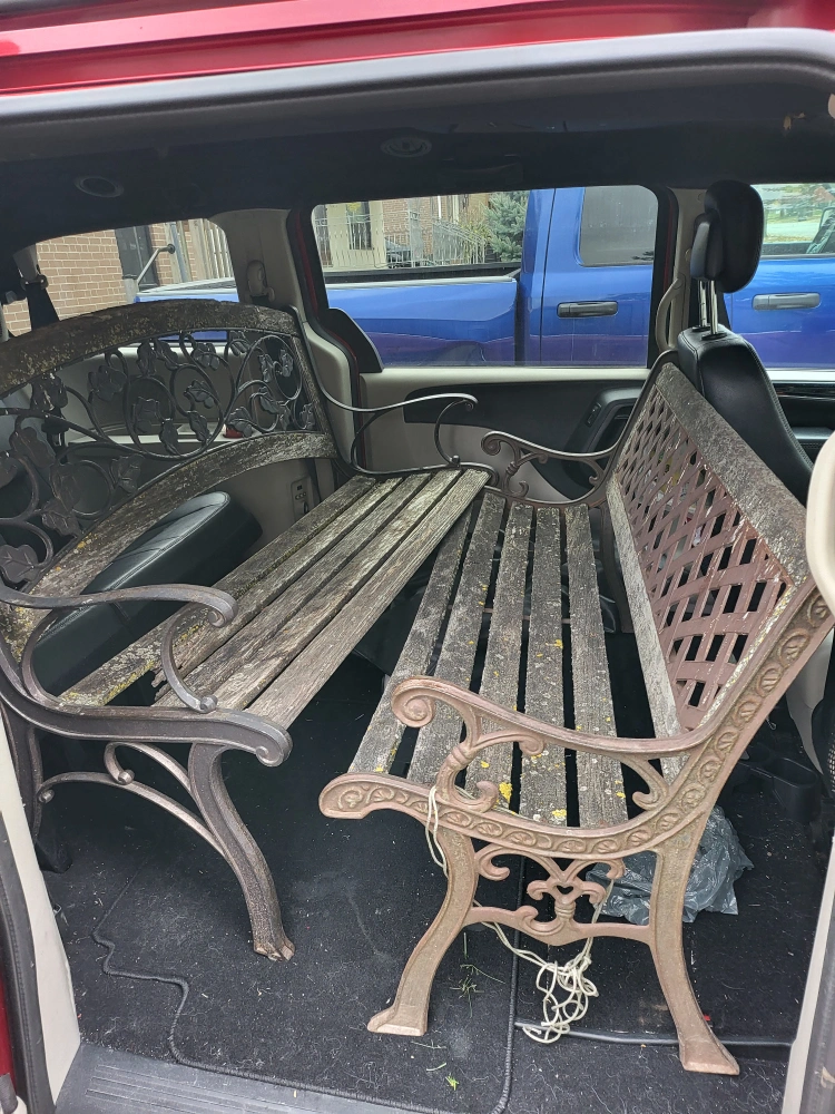 2 Two-seater cast iron garden bench. Wooden slats, needs repair great for hobby. 50.00 each firm 401 and islington ave