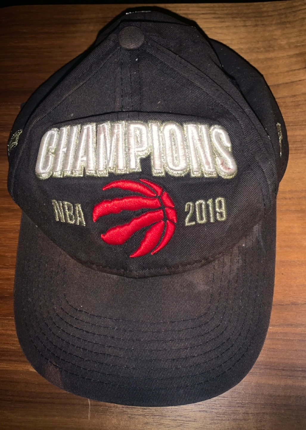Black hat with the Toronto Raptors logo and "Champions" written above it. Has the year "2019" and "NBA" written below the logo.