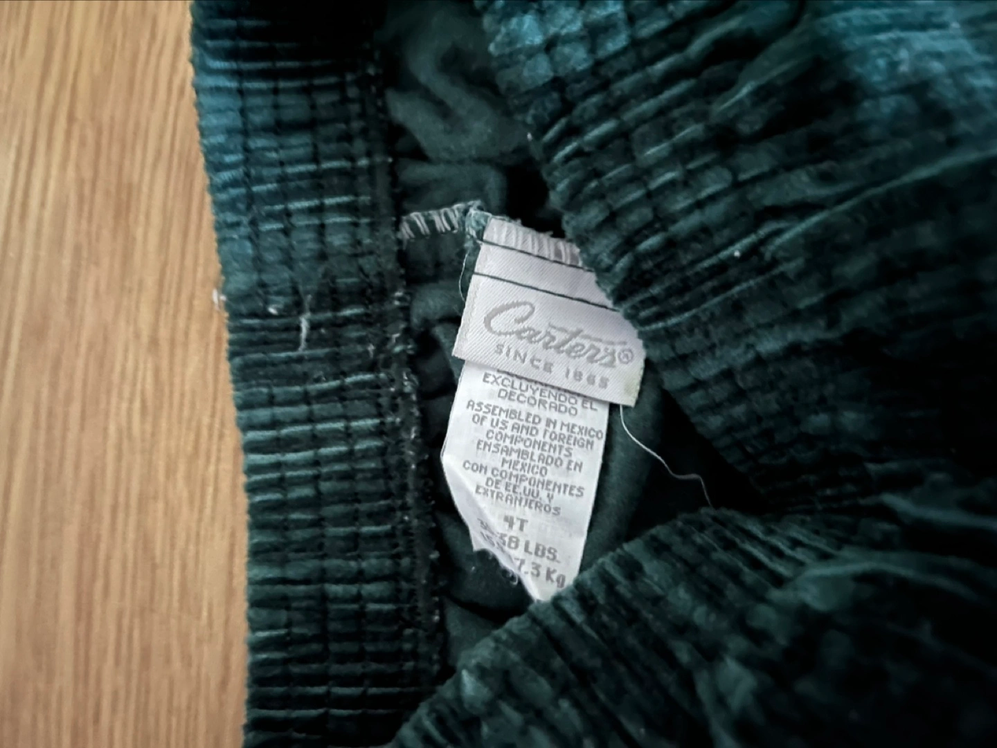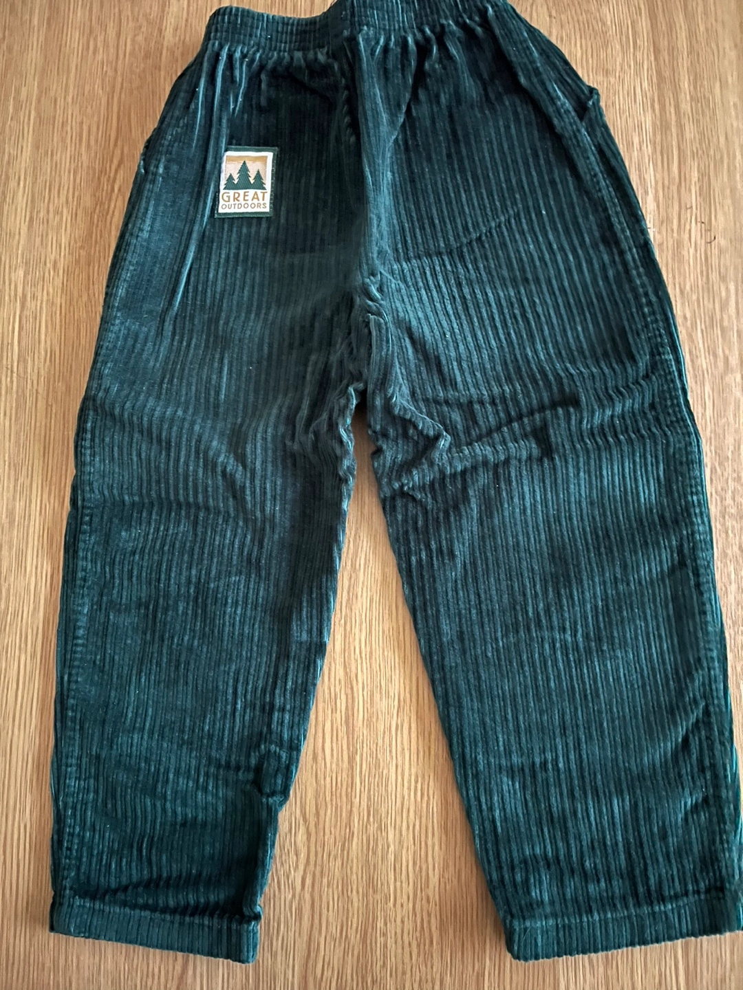New Carter’s green corduroy pants with an elastic waistband and a patch on the back that says 'Great Outdoors'. Size 4T. Never worn.