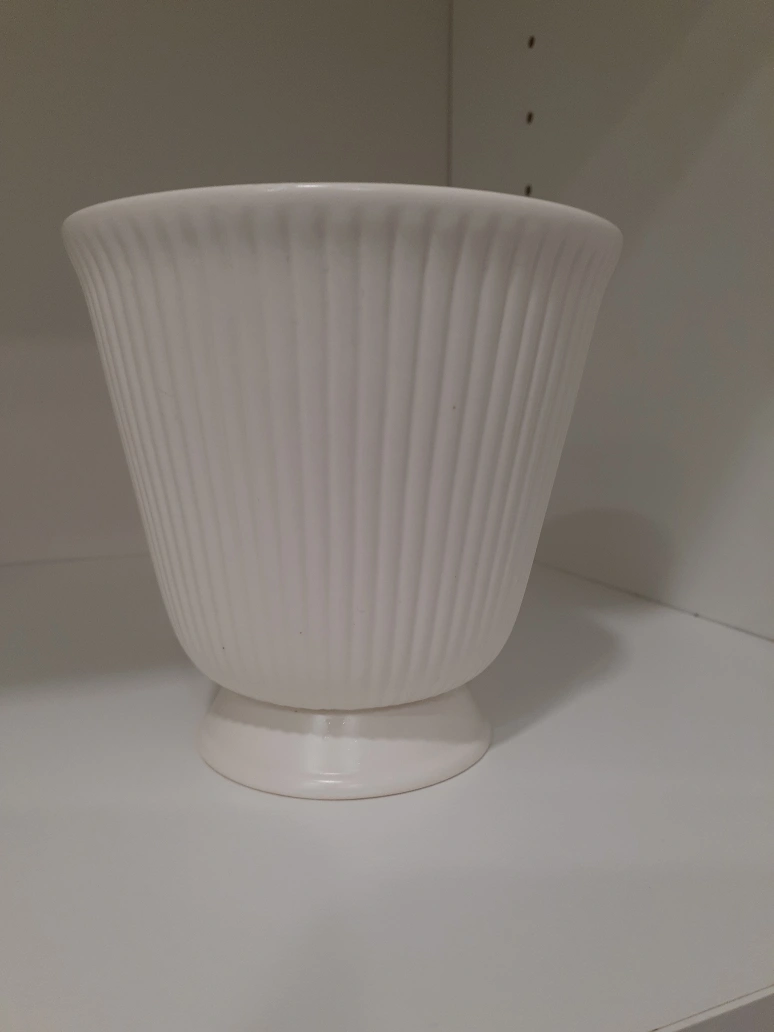 This classical shape creme colored ribbed vase from the Wedgwood Eturia is in excellent vintage condition.