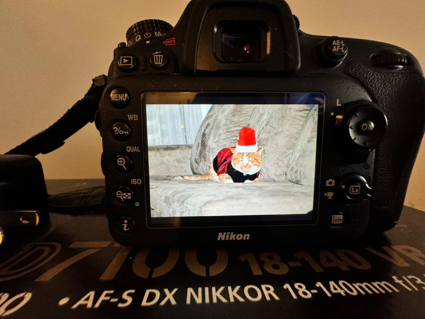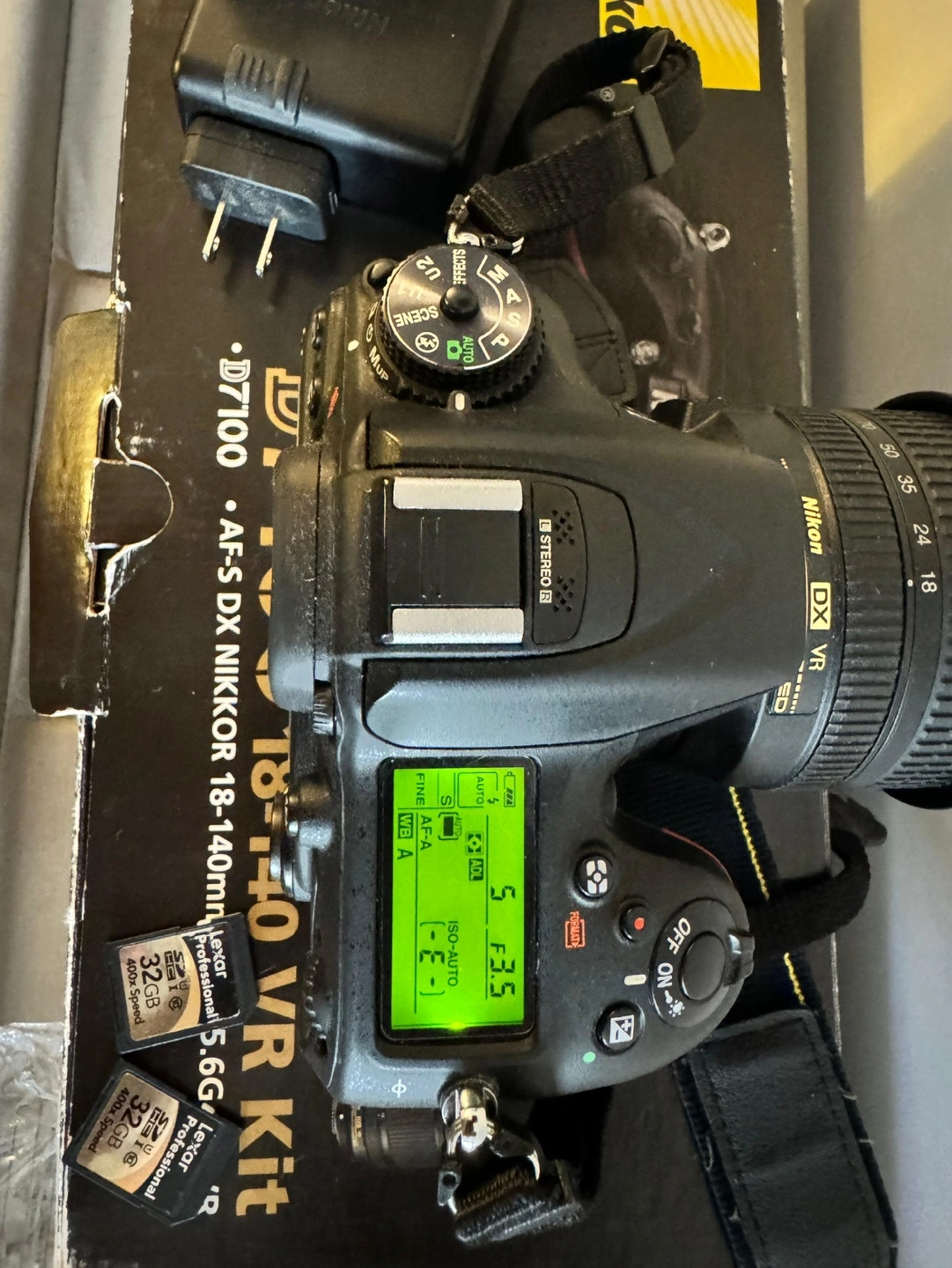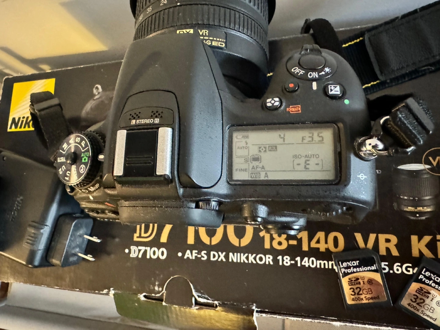 90DSLR camera with lens, charger and two batteries. Comes in original box.