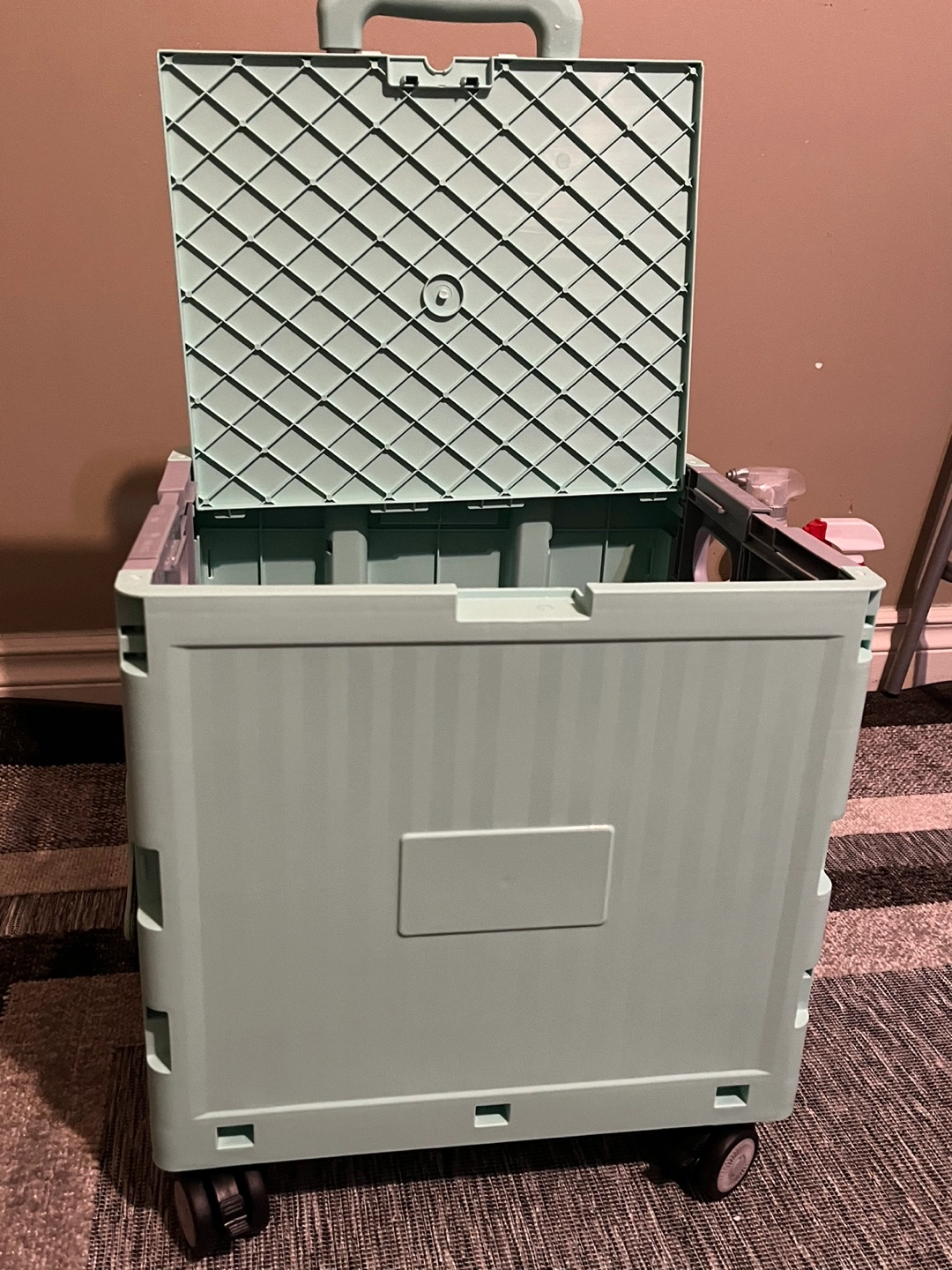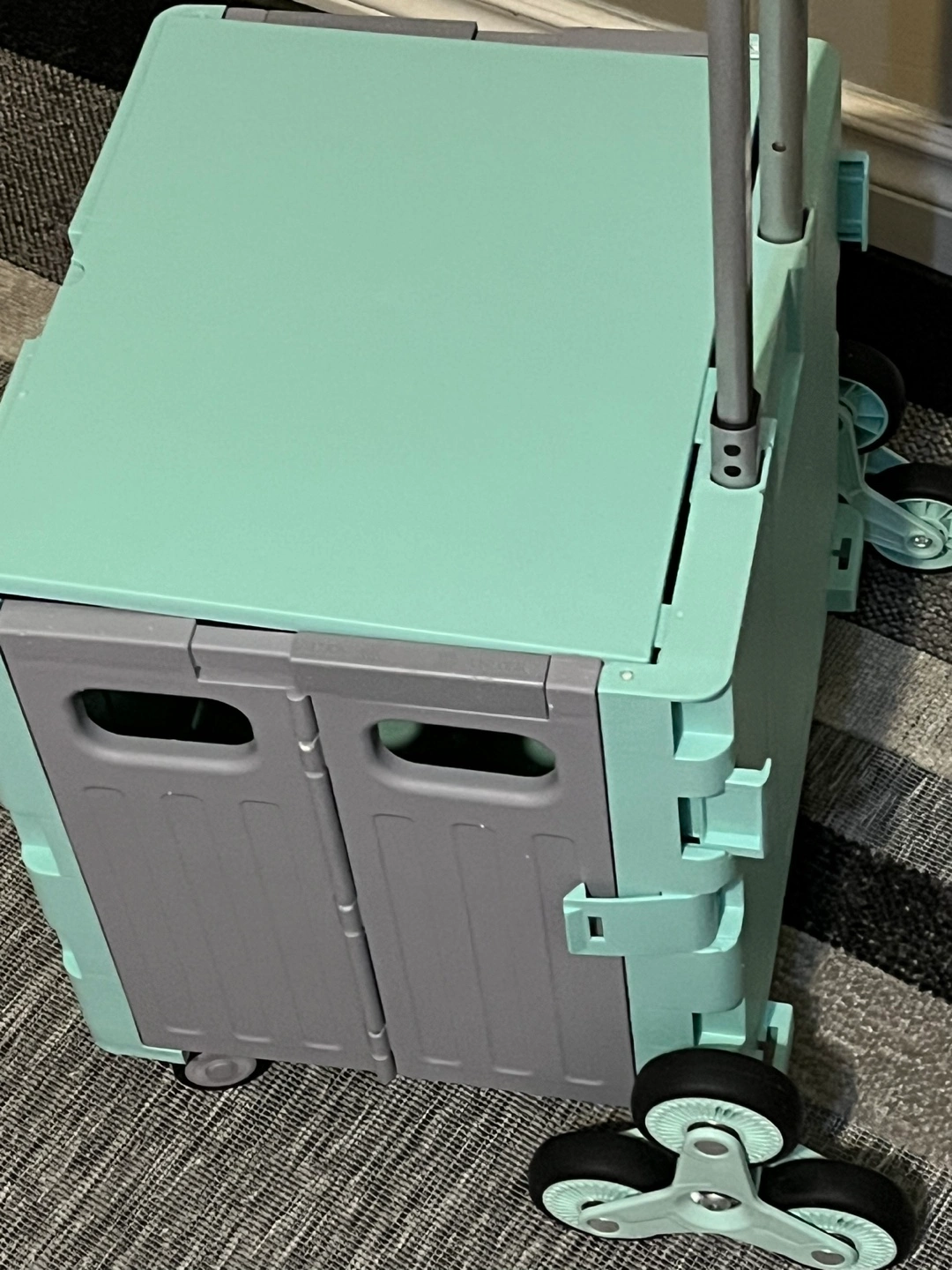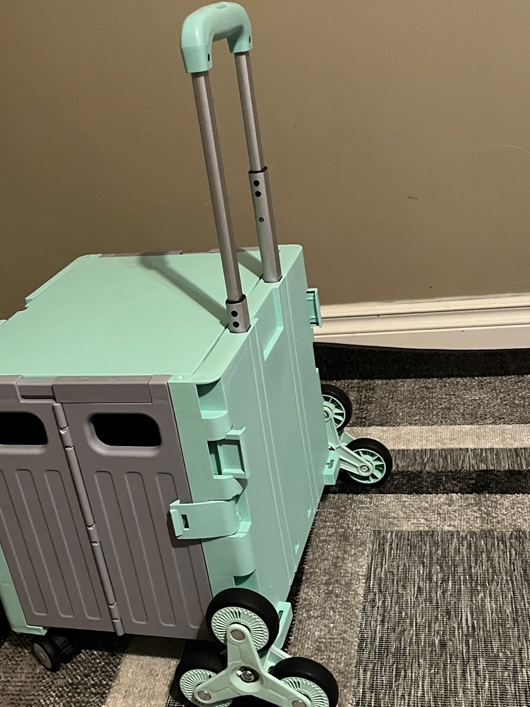 Lightweight, foldable shopping cart with wheels—ideal for groceries and hauling items. Compact and easy to store.