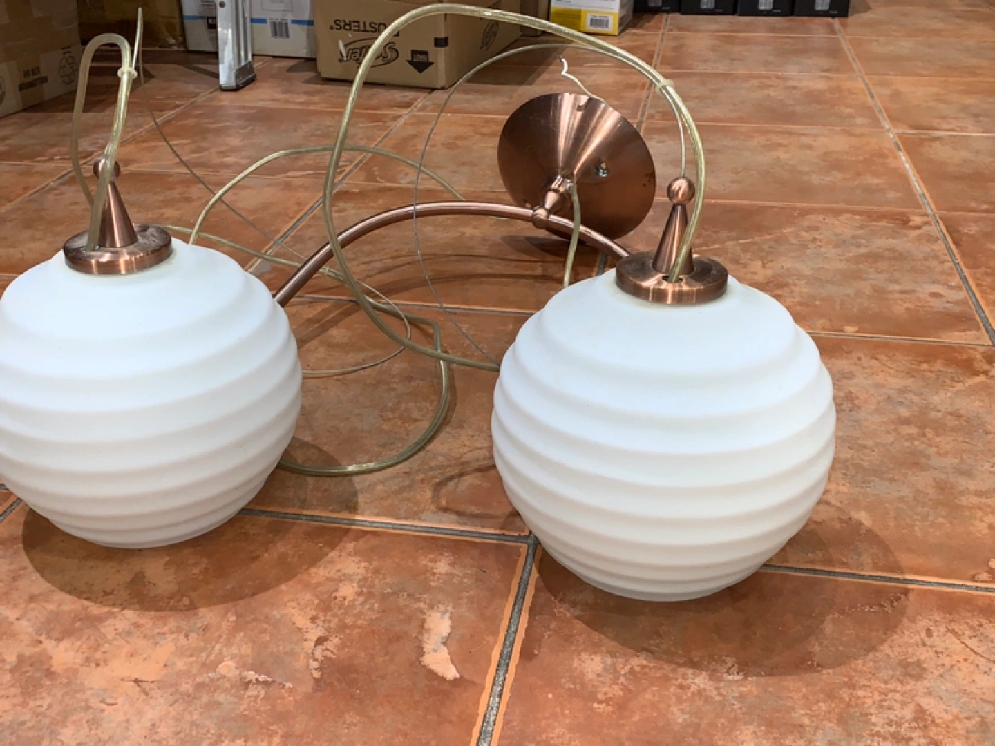 2 Light Kitchen Island Pendant Chandelier Light Fixture Honeycomb Glass Globes with Copper Accents for Kitchen Dining Room