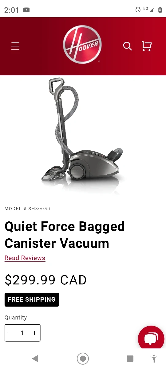 Used Hoover Quiet Performance bagged canister vacuum. Works great!