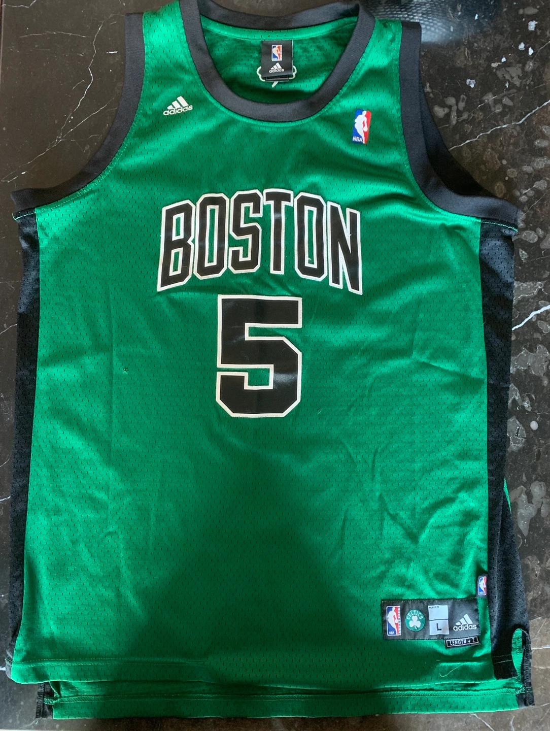 Green and black basketball jersey with the Boston Celtics logo and Kevin Garnett's name and number on the back. Size Extra Large.