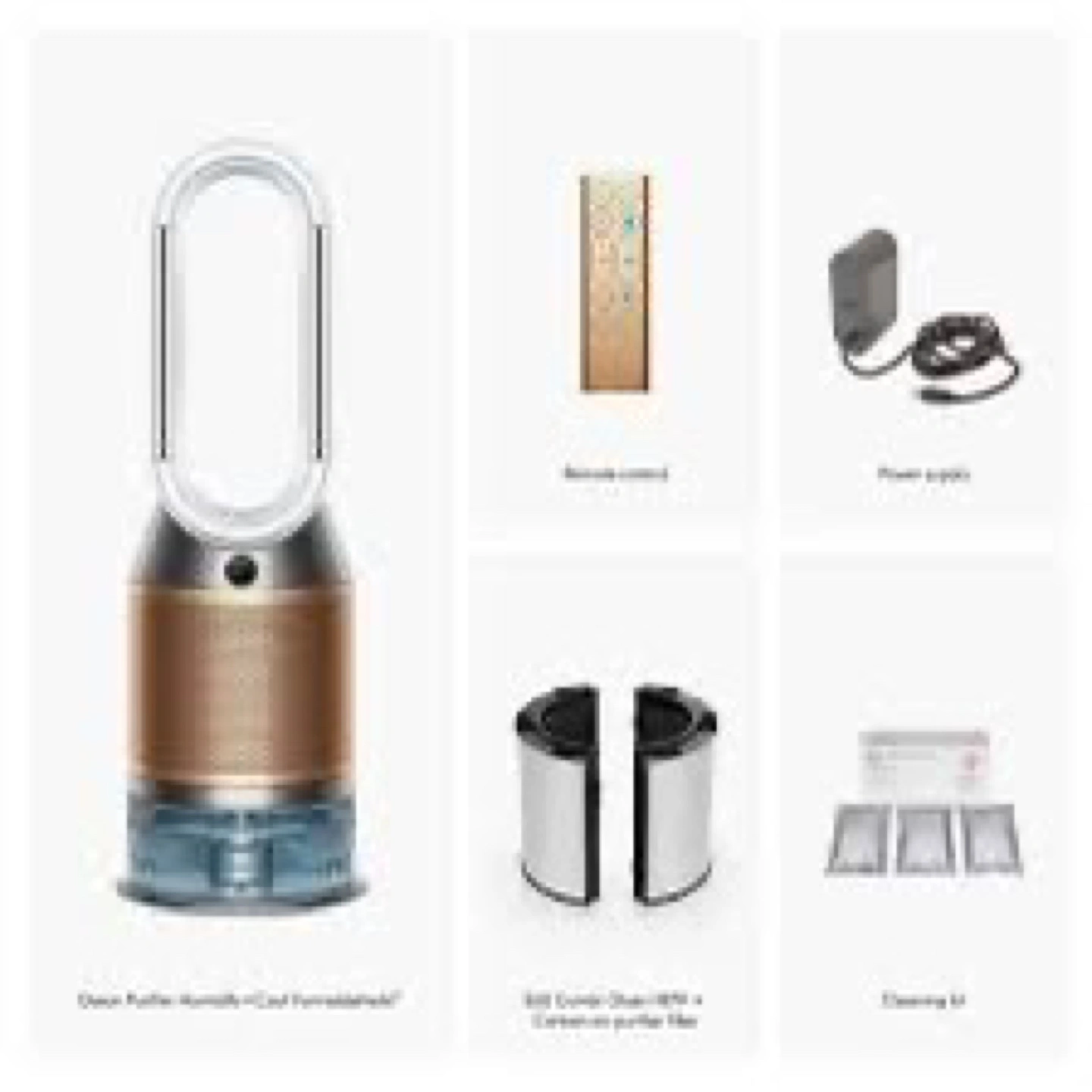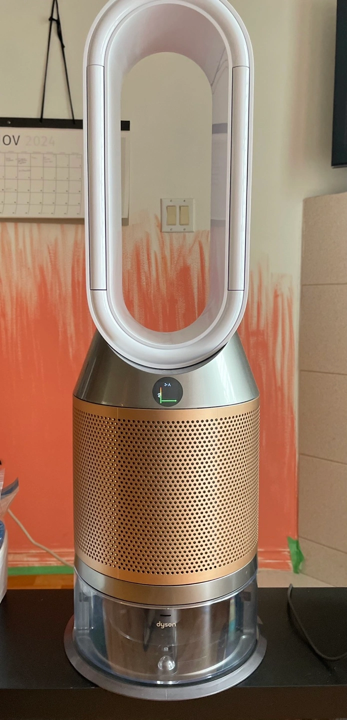 Air purifier with a humidifier and fan. Has a remote control. Comes with the original box.