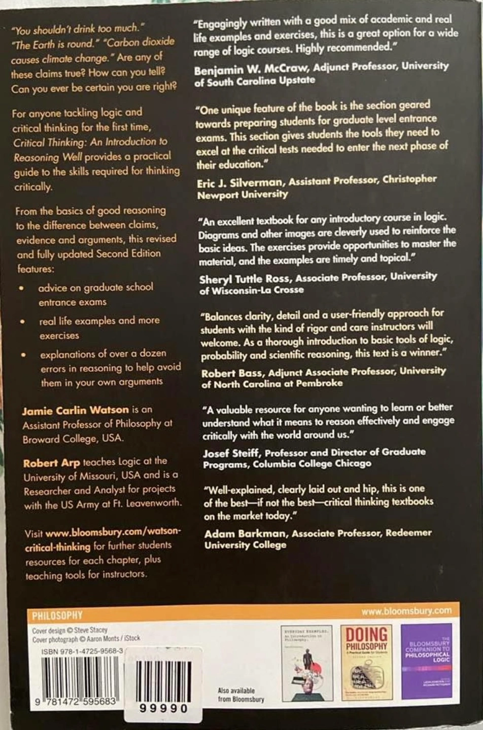 12Textbook on critical thinking. Second Edition. Includes advice on graduate school entrance exams, real life examples and explanations of over a dozen errors in reasoning to help avoid them in your own arguments. Used a few times. In great condition.