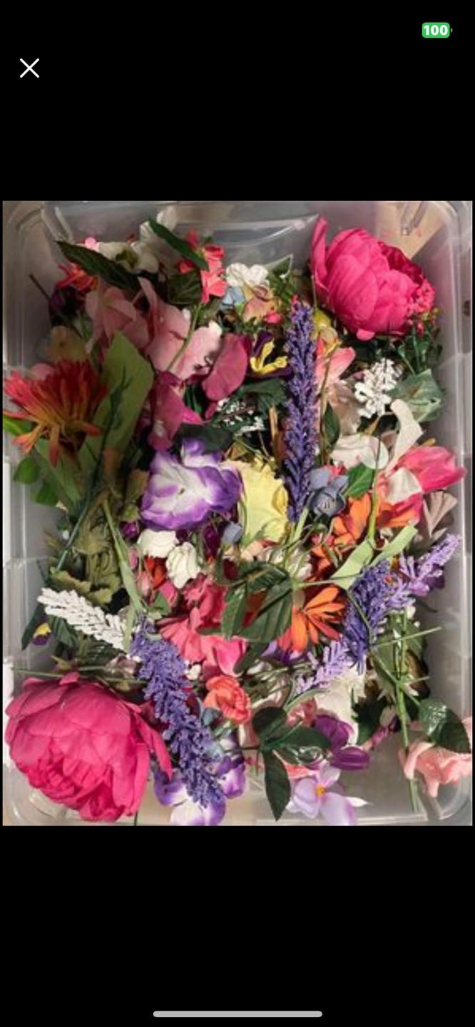 - Dimensions18”x26” bin full of artificial and silk flowers
