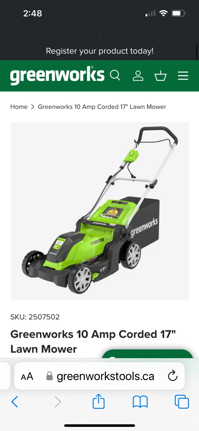 Greenworks 10 Amp Corded 17" Lawn Mower