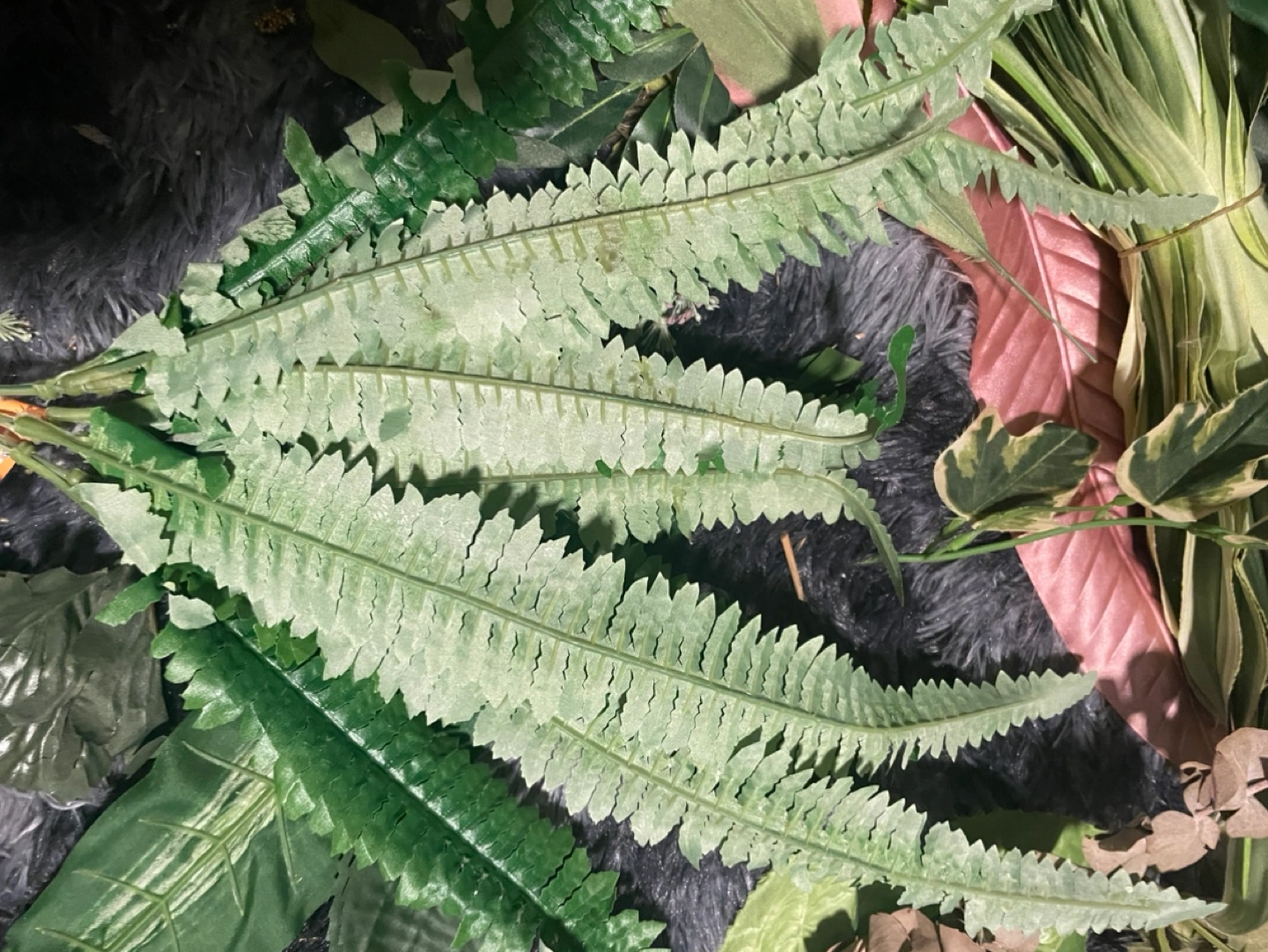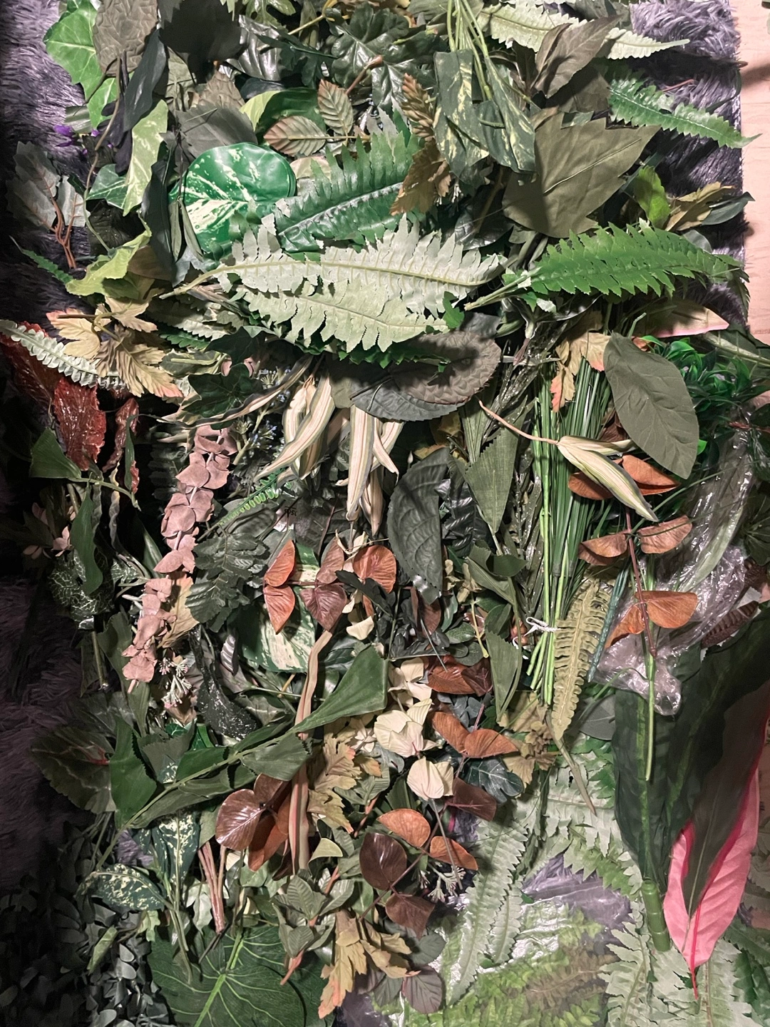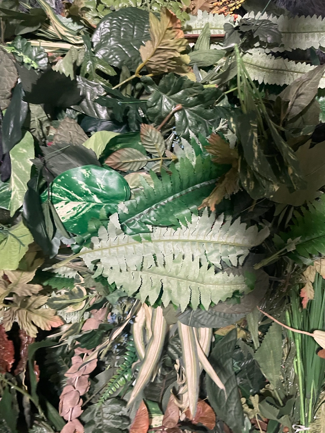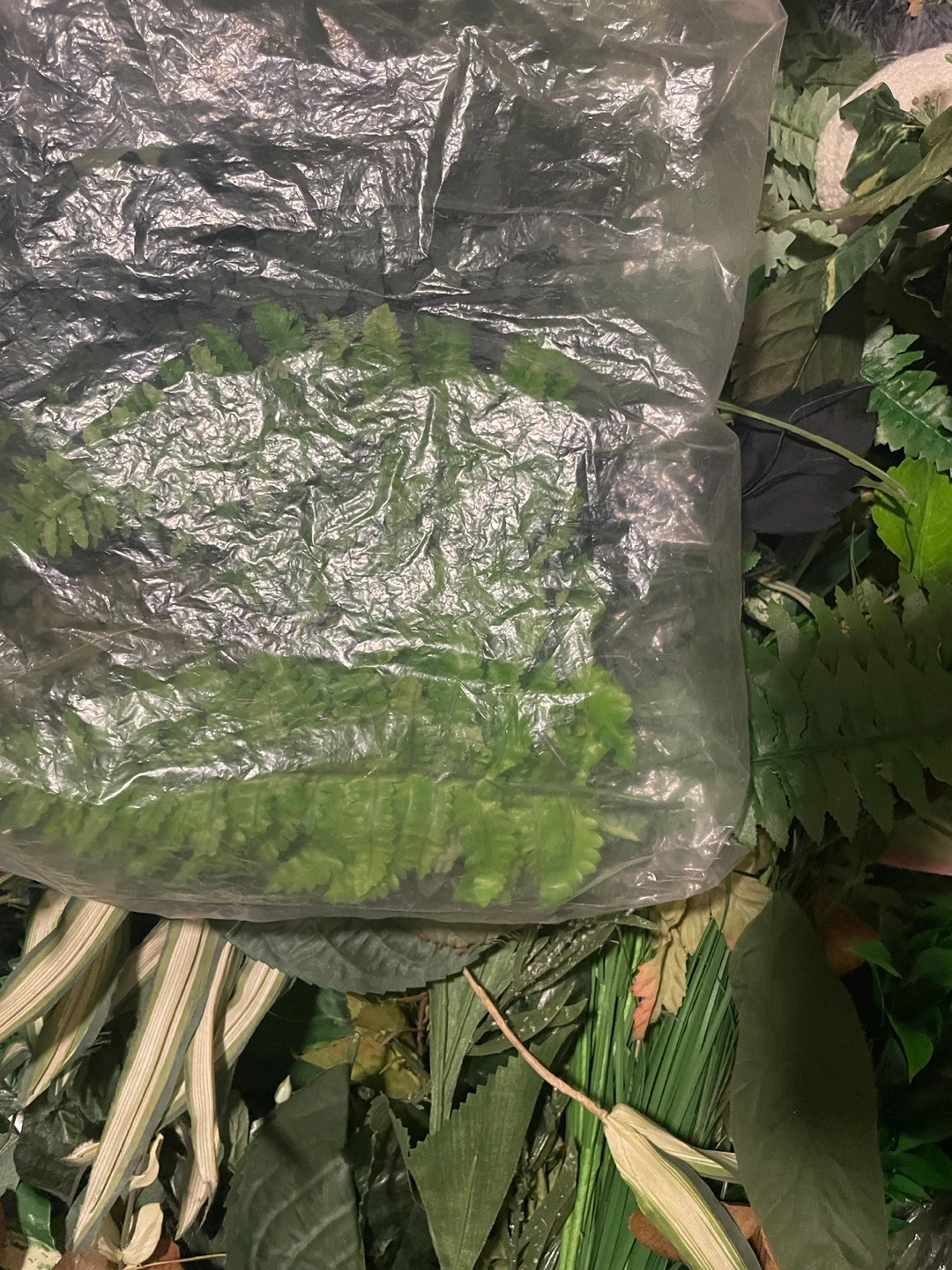 Assortment of artificial greenery, ferns, and leaves. Perfect for crafting.
