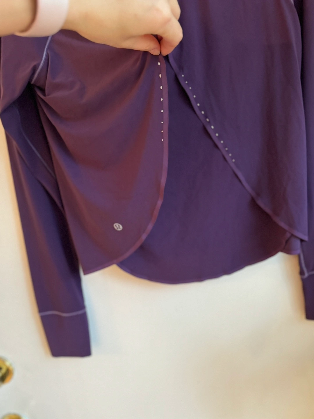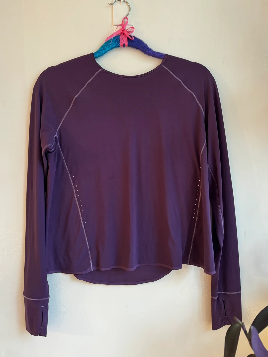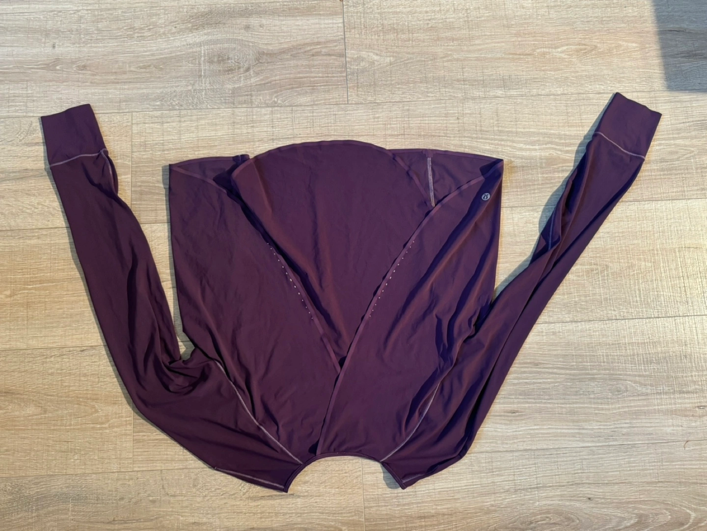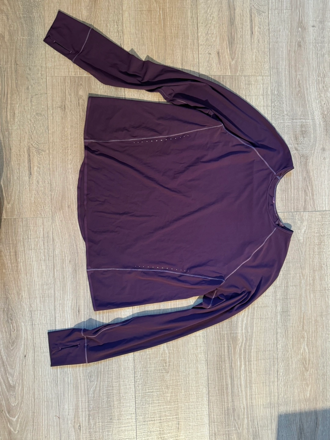 998Lululemon running long sleeve top. It has a faint red stain on the front but it is not super visible.