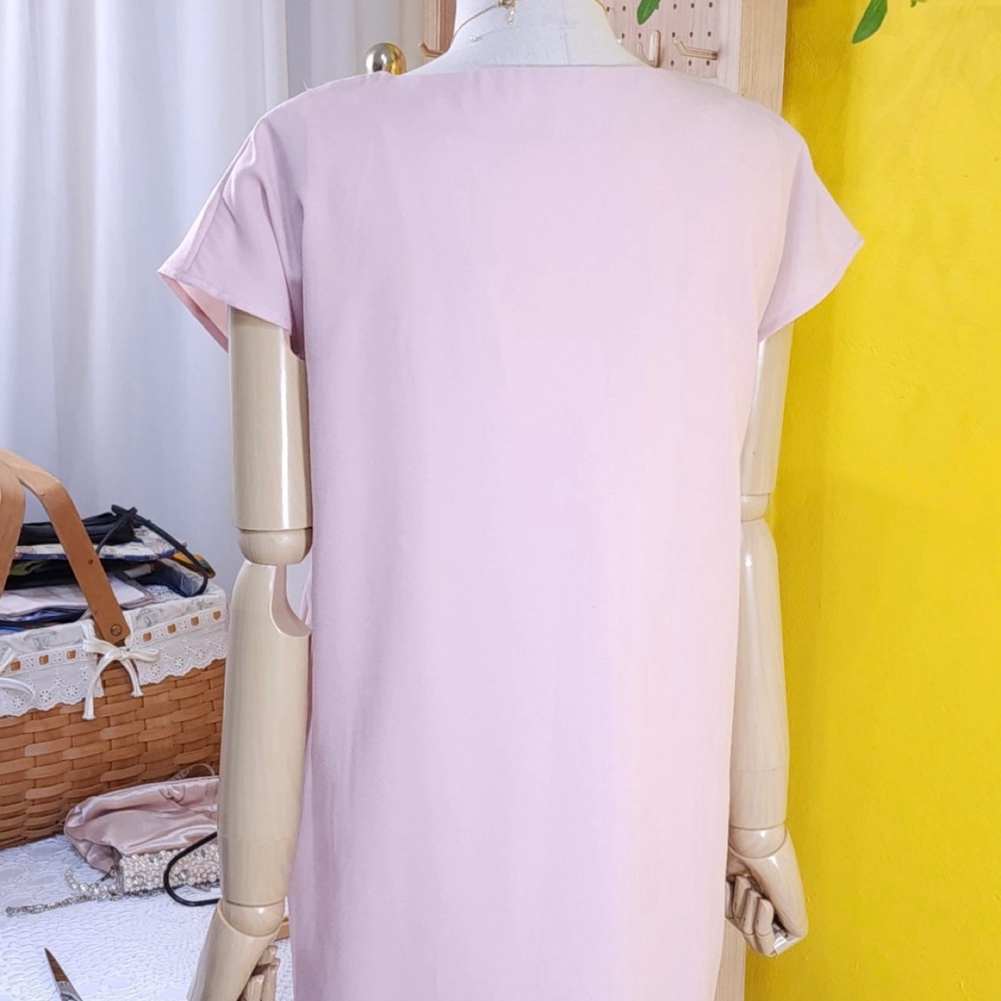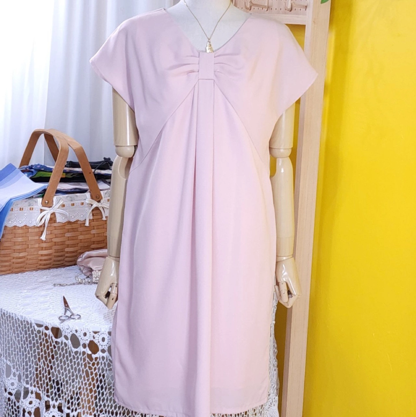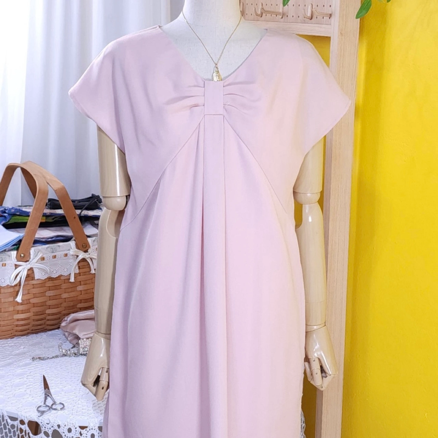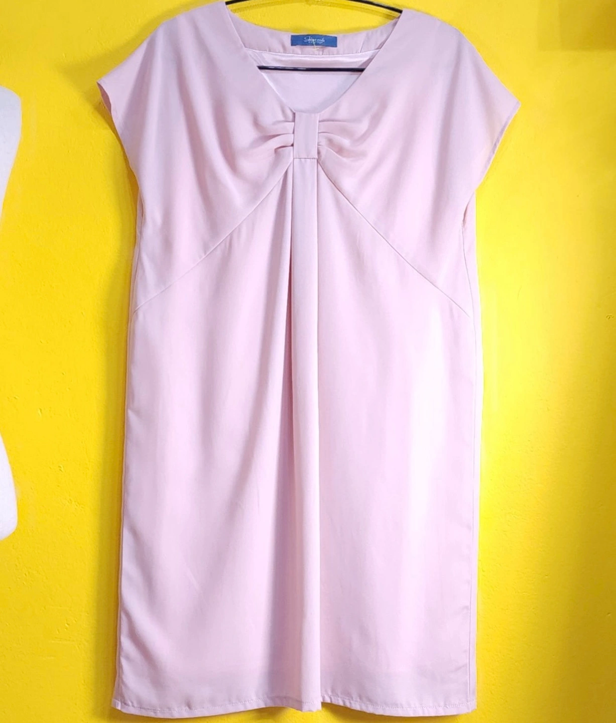A delicate and feminine dress in a soft pink hue, featuring an elegant bow detail at the front. The relaxed silhouette and lightweight fabric offer effortless elegance, making it perfect for both casual and semi-formal occasions.