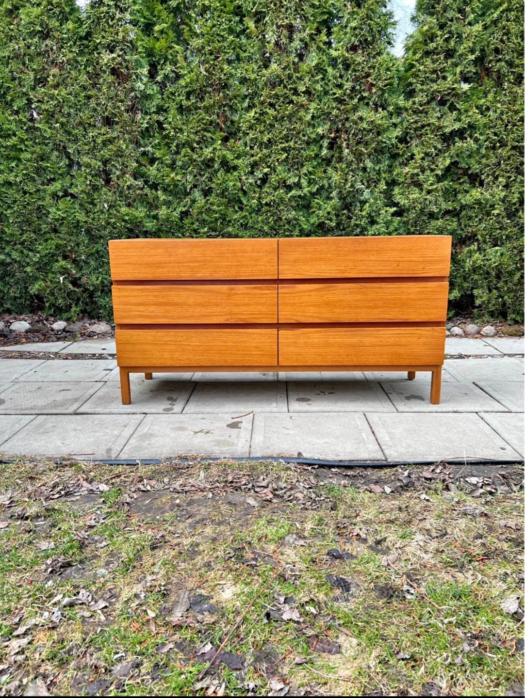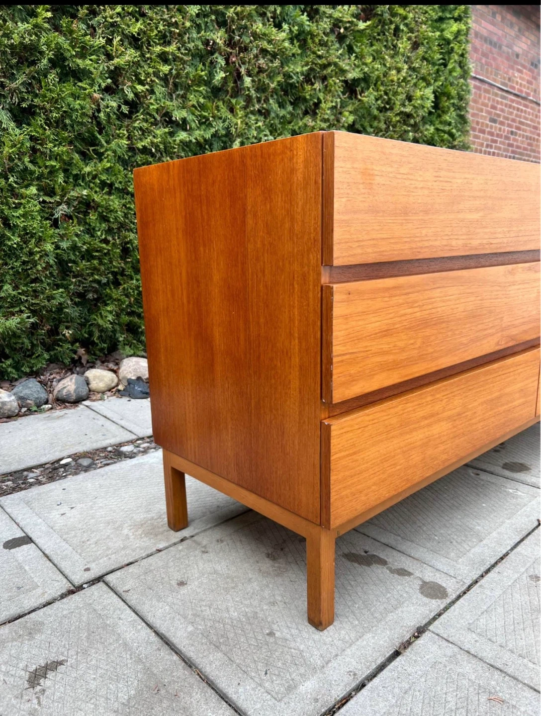Selling a Mid Century Teak 6 drawer teak dresser with a rich, warm grain and clean Scandinavian design. Features sleek handle free drawers with integrated pulls, smooth glide. Timeless, minimalist look in excellent vintage condition with minor wear.