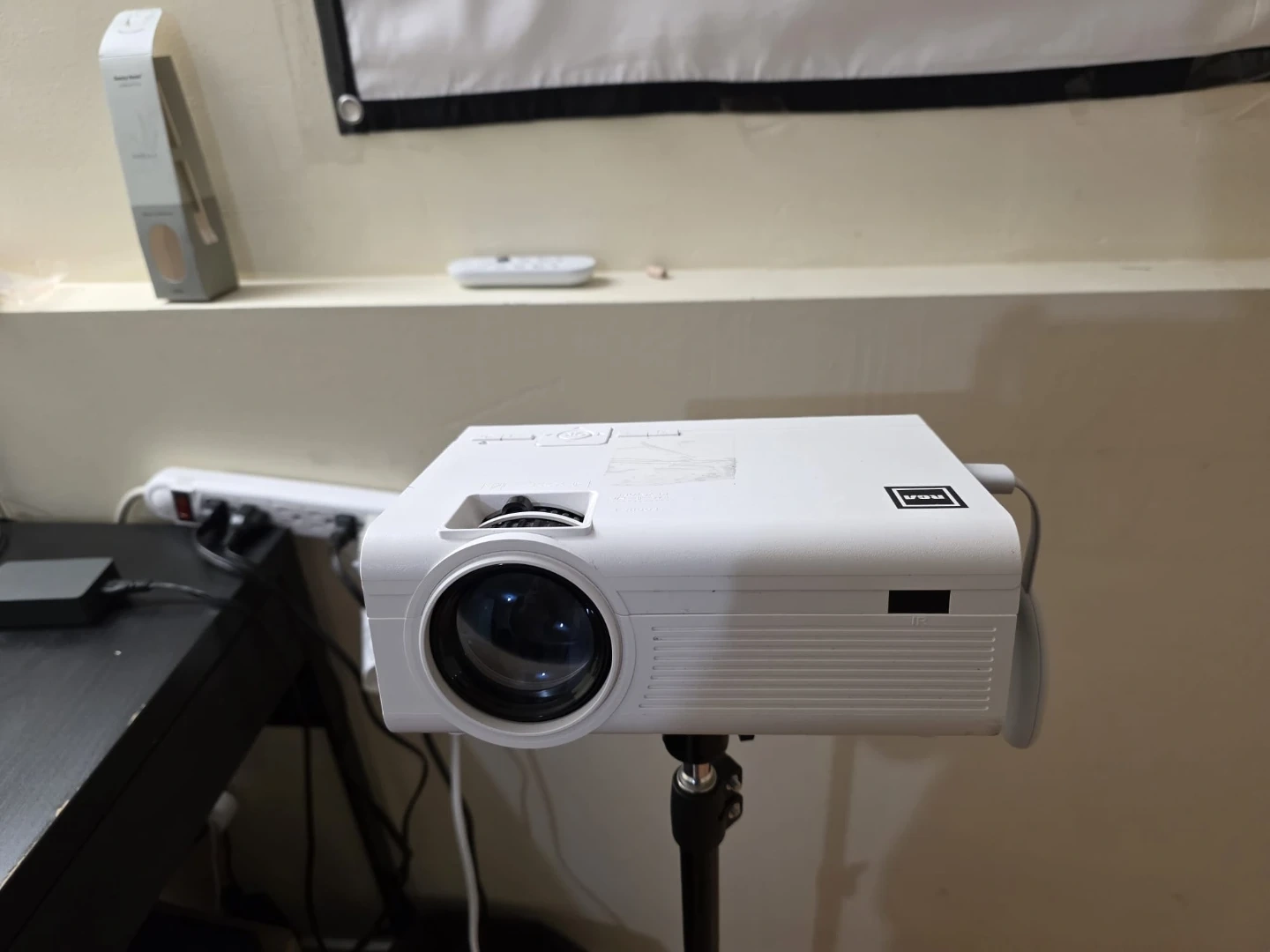 This is a white RCA home theater projector. It's designed for projecting movies and presentations. Great for setting up a movie night or a shared viewing experience! It does not come with a remote control.