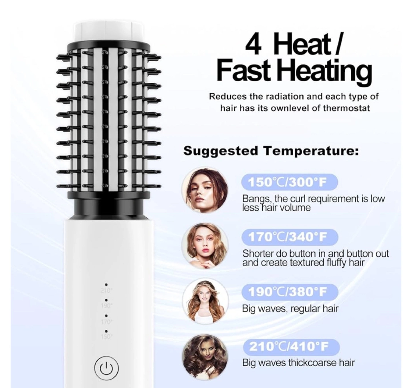 3-in-1 cordless curling iron brush. Features ceramic keratin coating. Multi-million plasma repair. Heats larger areas faster. Portable and lightweight.