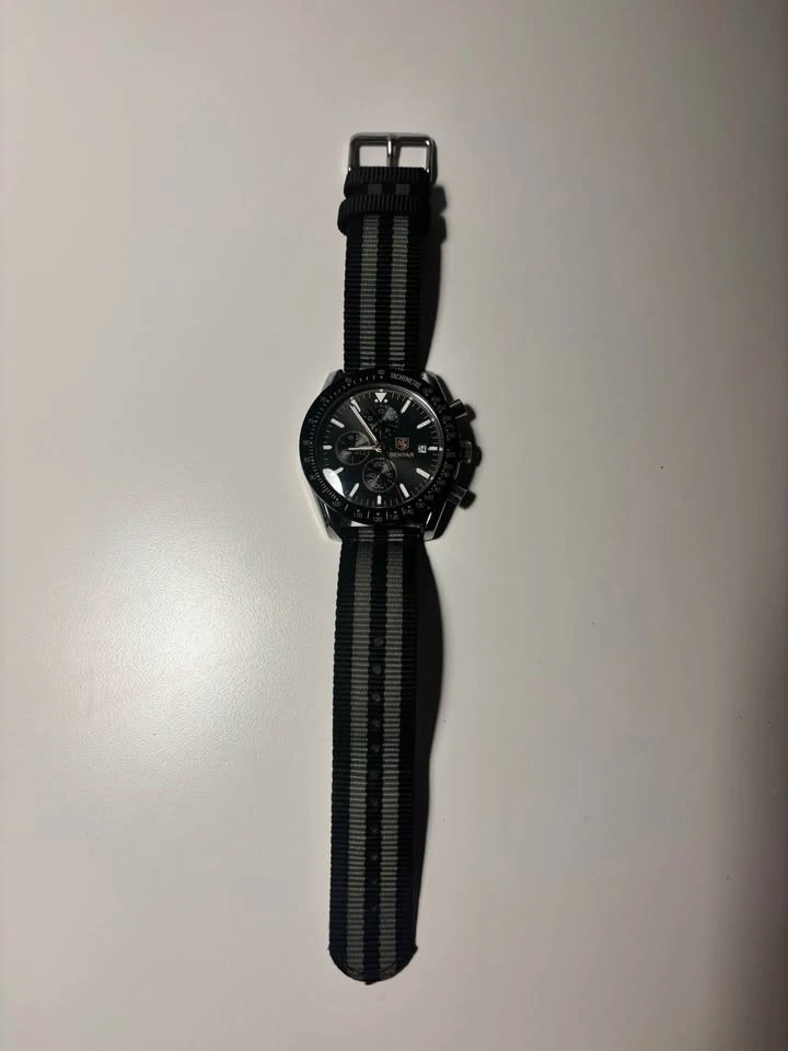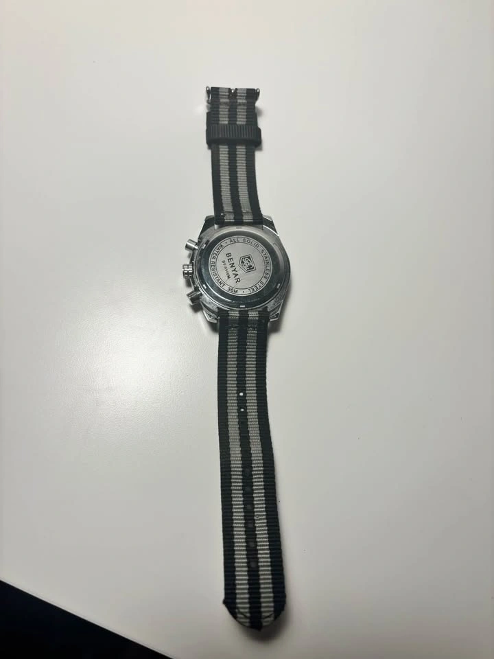 BENYAR watch - basically new, no scratches and no wear and tear. Originally came with a silver strap, but I replaced it. The Archer watch strap is never worn, with no wear and tear. If you don't want the Archer strap, I can give you the original silver strap instead. I don’t have the box, but I can give you a watch cushion shown in the photo and the BENYAR cleaning cloth. Pick up only in Coquitlam or within 20 kms.