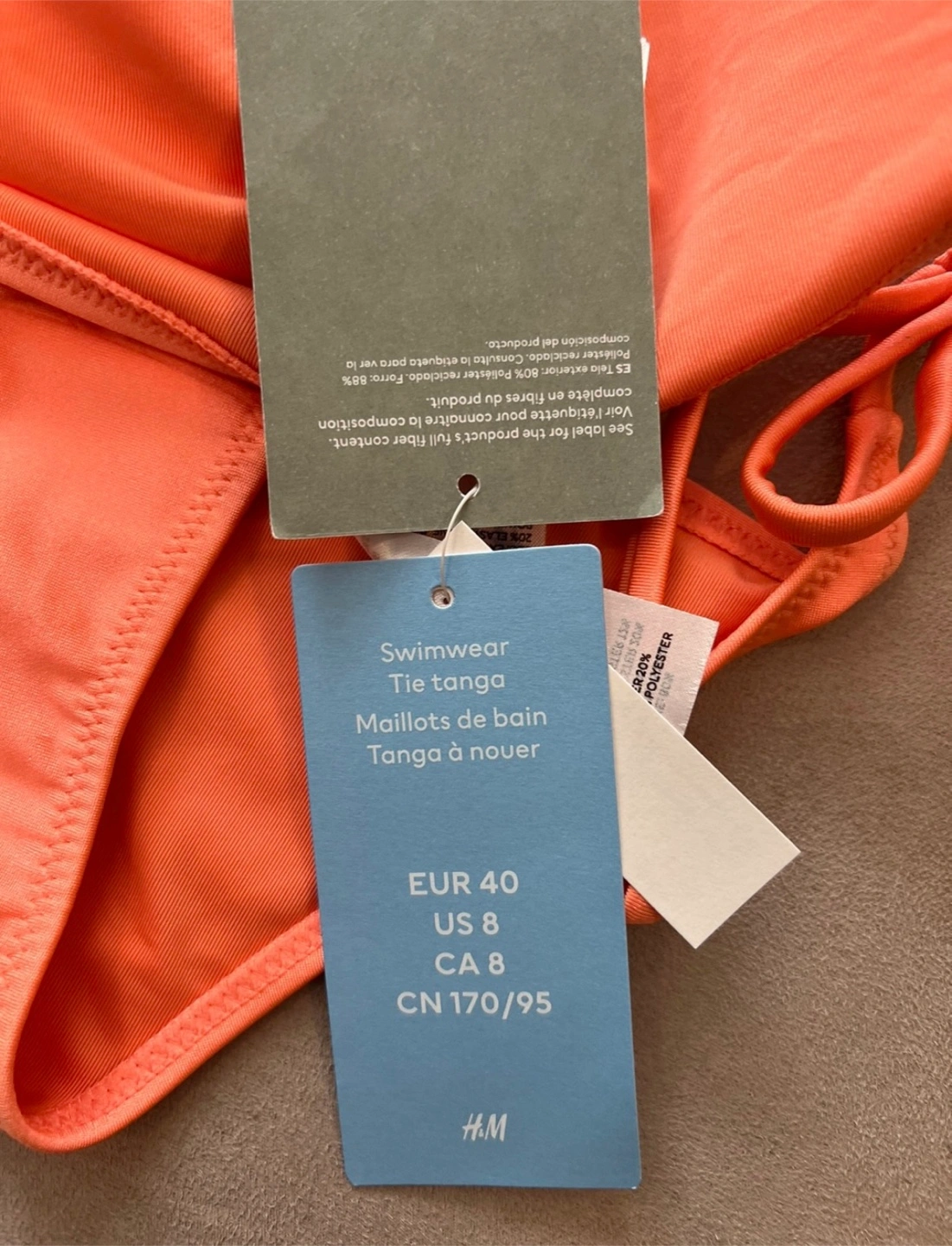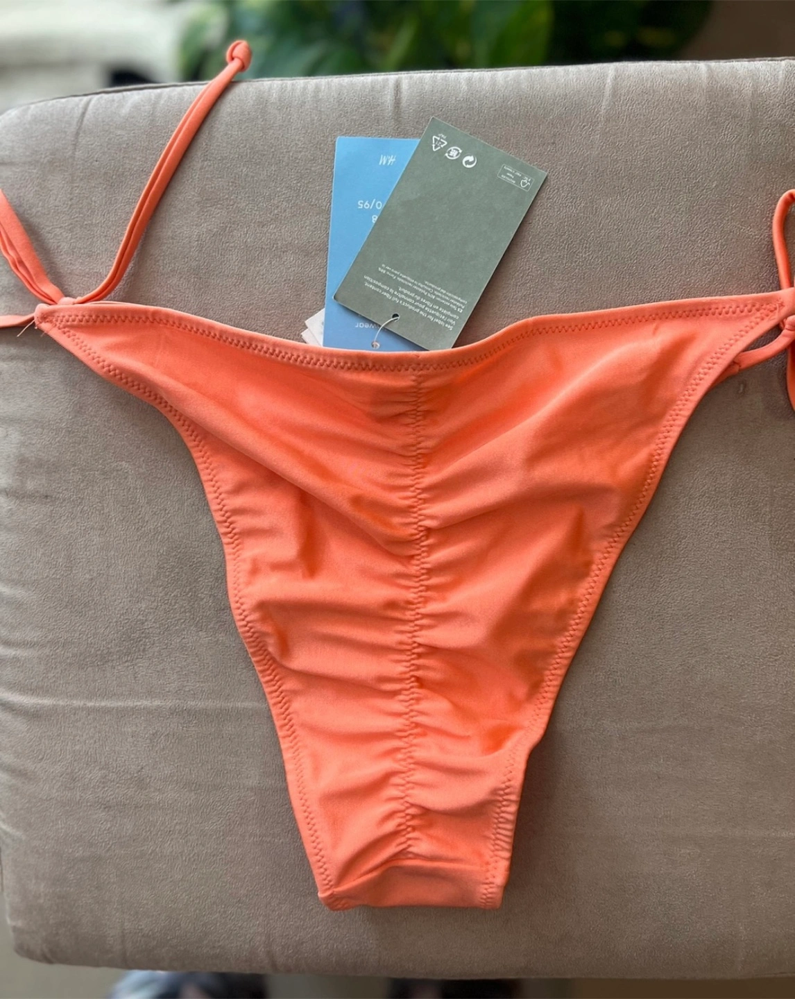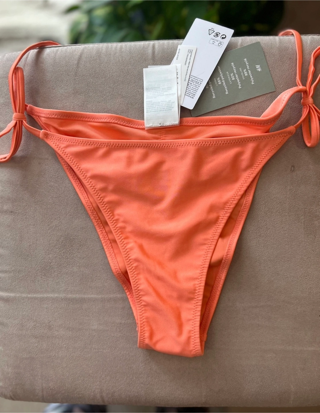 A pair of orange swimwear bottoms. Tie detailing on each side. New with tags.