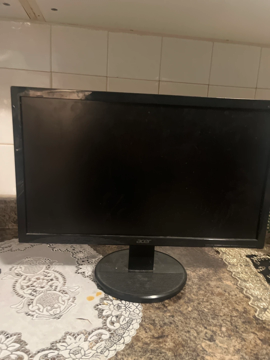 This is an Acer computer monitor. It's black and has a stand. It's ready to be set up for your workspace. Good for gaming stand is extra five dollars.
