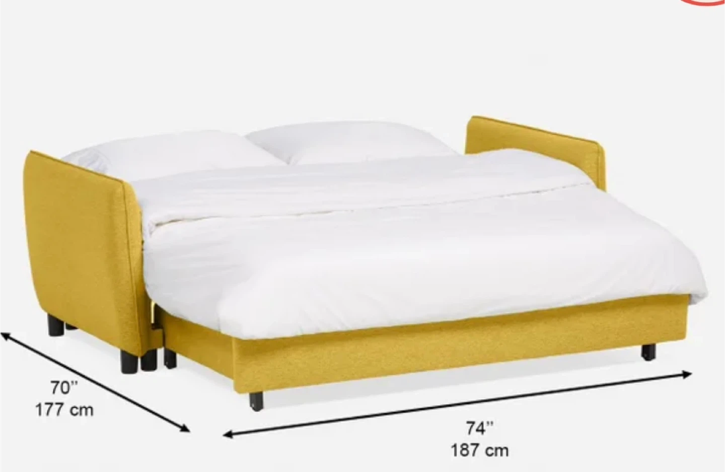 • Depth (as bed): 177 cm (70”)