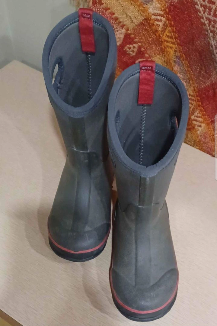 486Grey rain boots with red accents. Size US 1, Euro 31. Perfect for winter and rain, No rips or holes,clean. Good Condition.