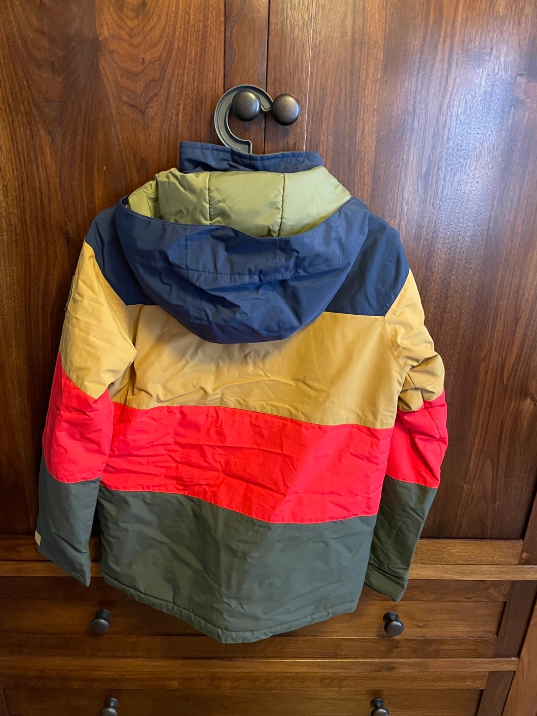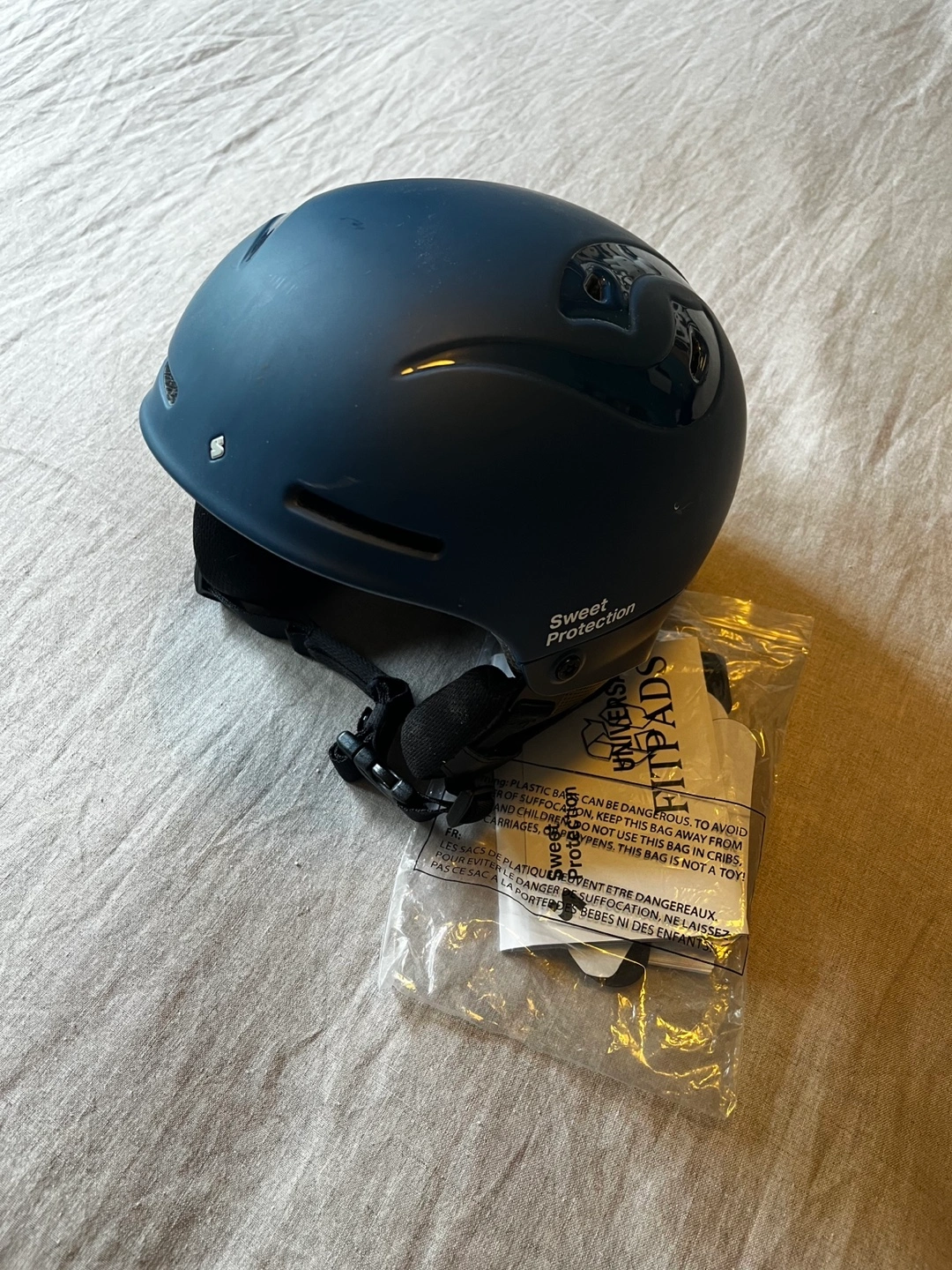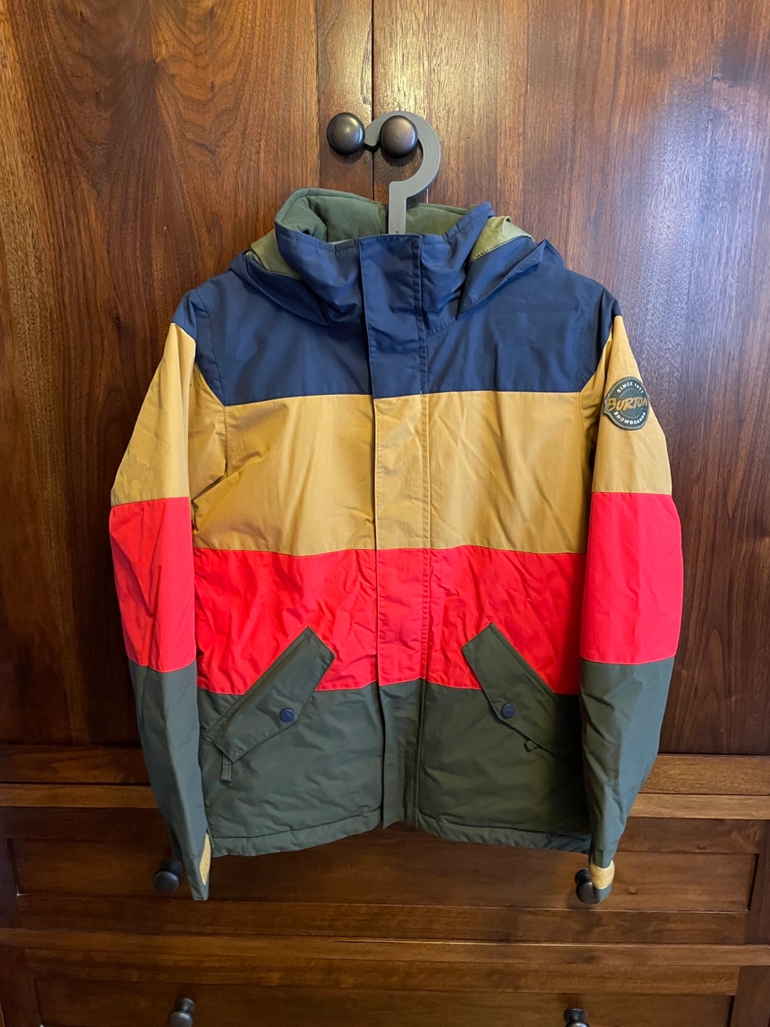 Burton Youth Snowboard Jacket and Bib Pants (Size L (14 to 16)) Waterproof (DWR finish), insulated snowboard jacket and pants for youth, aged 14 to 16. One scuff mark on right pant knee - otherwise in excellent condition. Jacket has some soft fleece lining at the back and poly-fill insulation throughout, with a built-in powder skirt, adjustable cuffs, adjustable hood, media pocket at chest, key pocket on cuff, and a velcro pant loop on the inside. Bib pants have poly-fill insulation, adjustable straps, front chest pocket, and side pant pockets. Great colours so you can easily spot your child on the slopes! Youth Rossignol Waterproof Ski/Snowboard Mittens (Size 12) With fleece glove inserts. Gloves are in like new condition with no tears and very little wear on the palms. Sweet Protection Ski/Snowboard Helmet Blue (Size S/M (53-56cm)) In great condition with some minor scratches and blemishes. Was never hit hard. Includes fit pads. Youth Marker Ski/Snowboard Goggles with Travel/Cleaning Pouch A few marks on the lenses but overall in good condition. The foam is still intact and springy. Everything included: Burton Youth Snowboard Jacket and Bib Pants (Size L (14 to 16)) Youth Rossignol Waterproof Ski/Snowboard Mittens (Size 12) Sweet Protection Ski/Snowboard Helmet Blue (Size S/M (53-56cm)) Marker Youth Ski/Snowboard Goggles with Pouch
