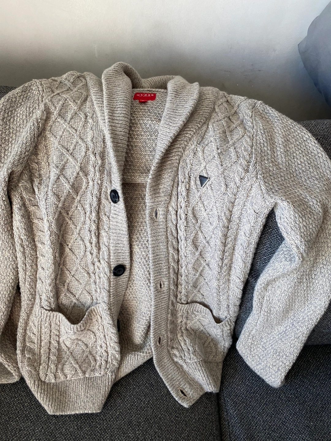 446Grey beige cardigan with cable knit and pockets. Button closure. Long sleeves. Never worn NWOT