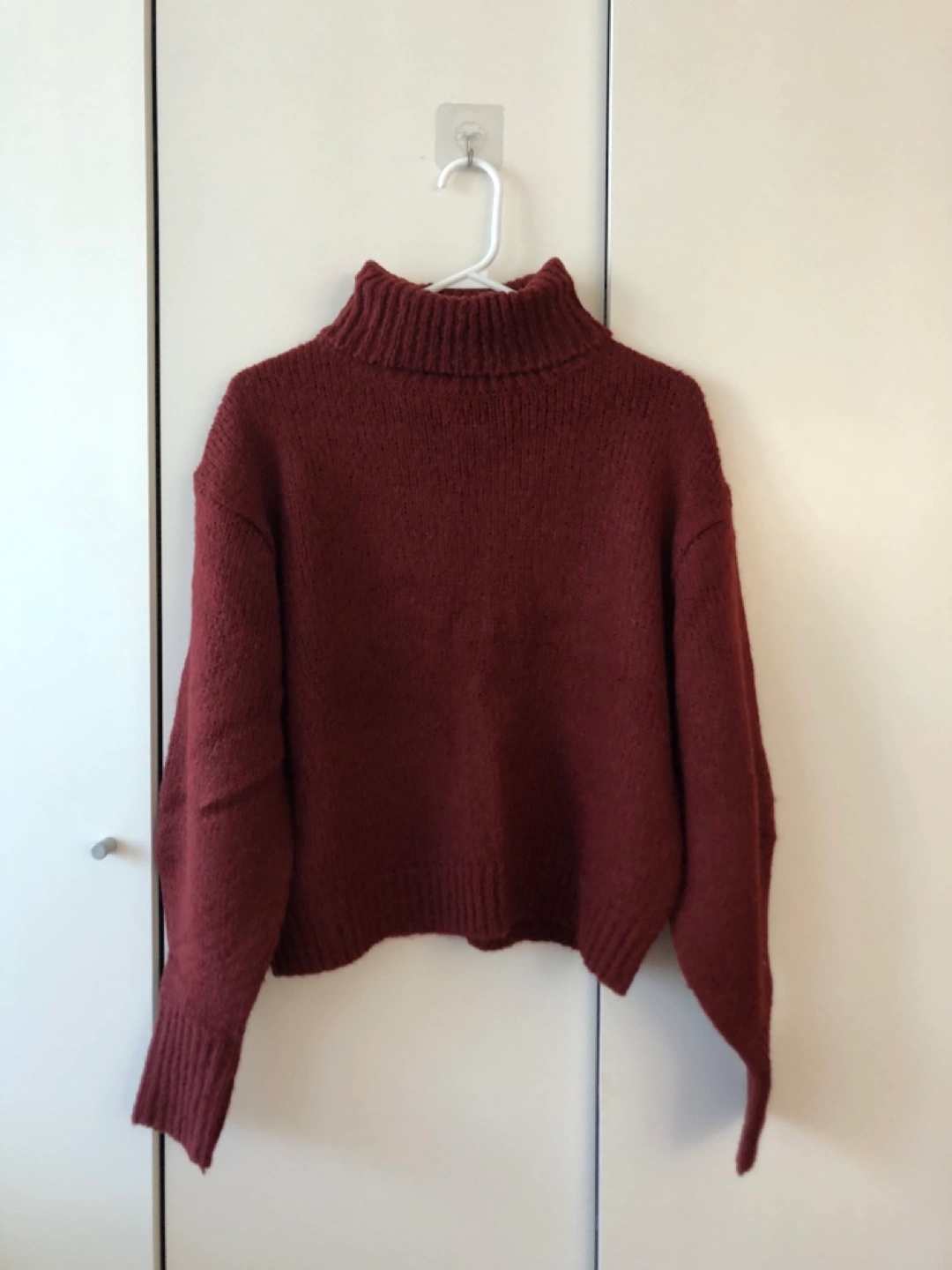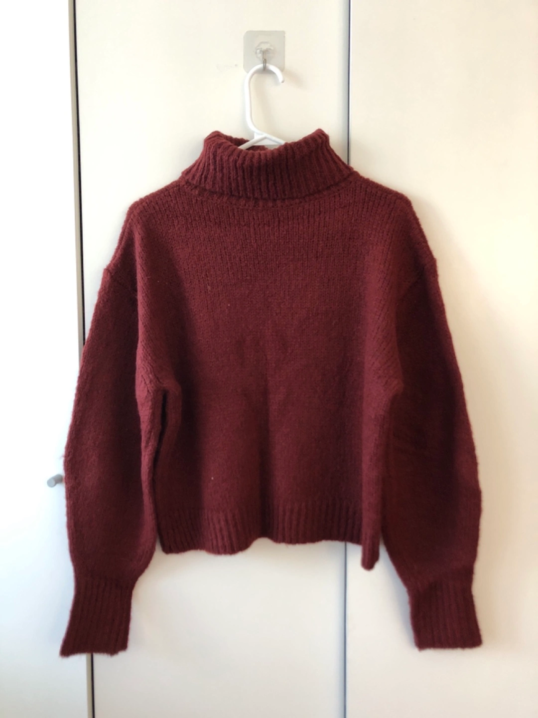 Burgundy turtleneck sweater. Soft and comfortable.