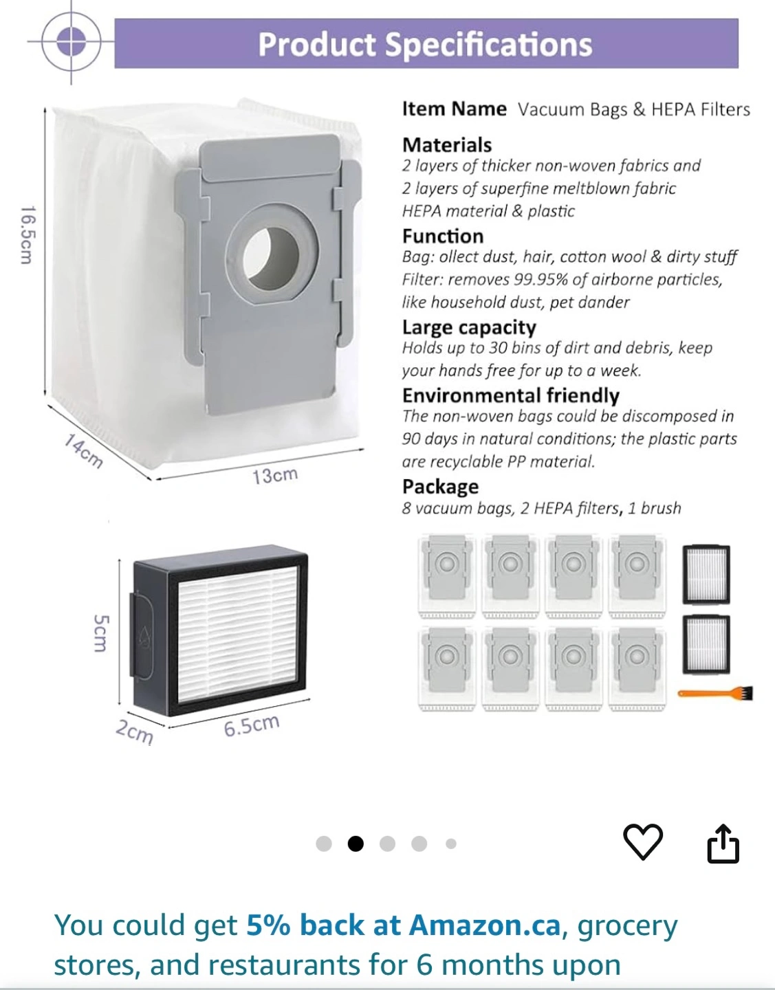 I had used two bags and one filter, but had to return my Roomba and don’t need the rest anymore.