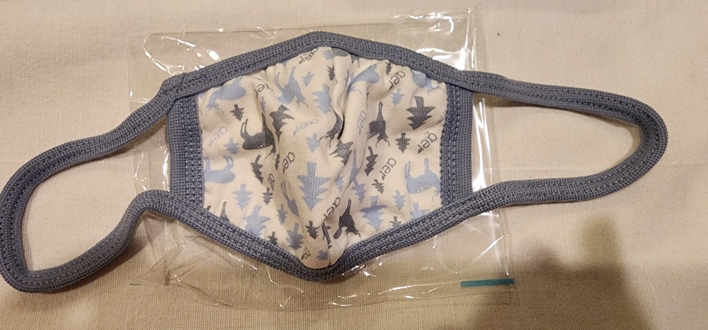 New 4 pack of face masks in a white and blue colour scheme with a deer and tree pattern for children.