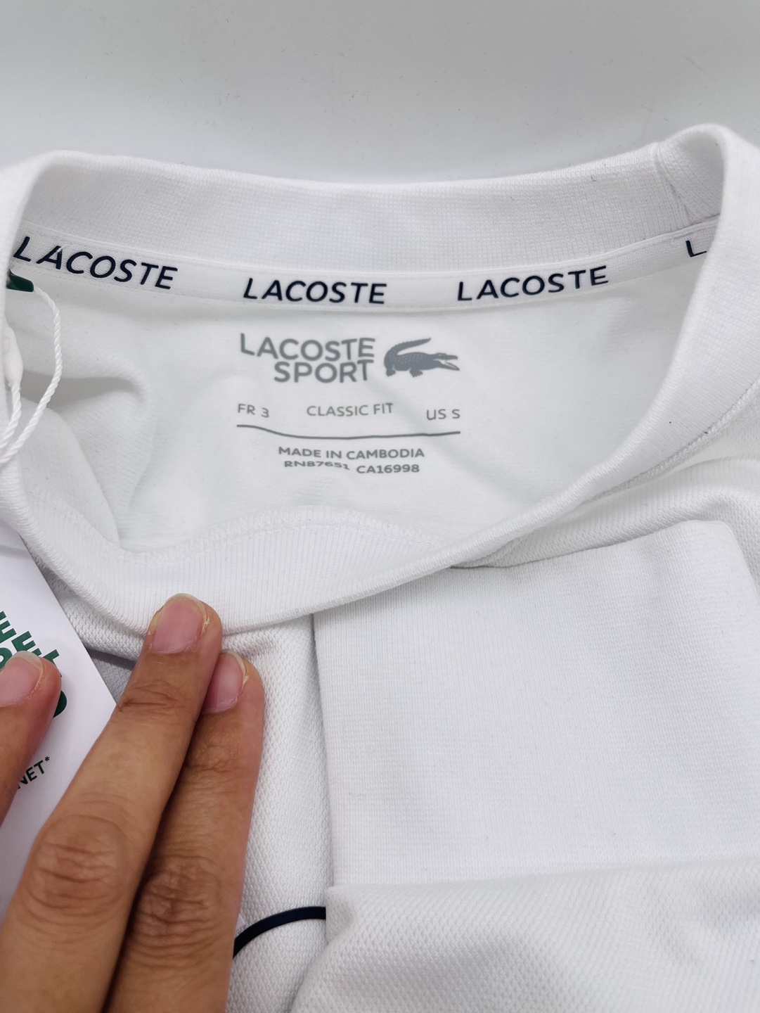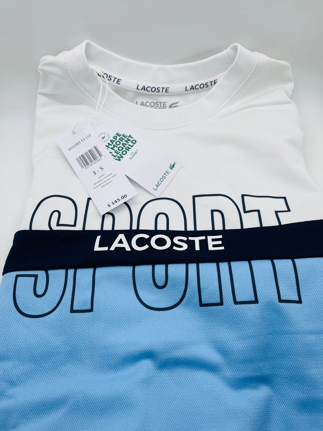 Lacoste Sport long sleeves . White with blue and navy blue accents. Classic fit.