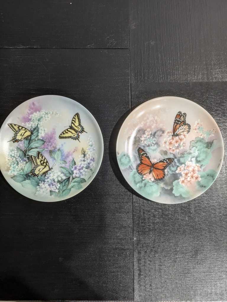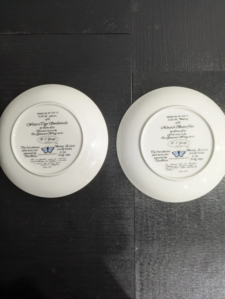 1988 collectible plates from the "Gossamer Wings" series by Lena Liu, featuring butterflies. Measures 8.5 inches in diameter and is in excellent condition.