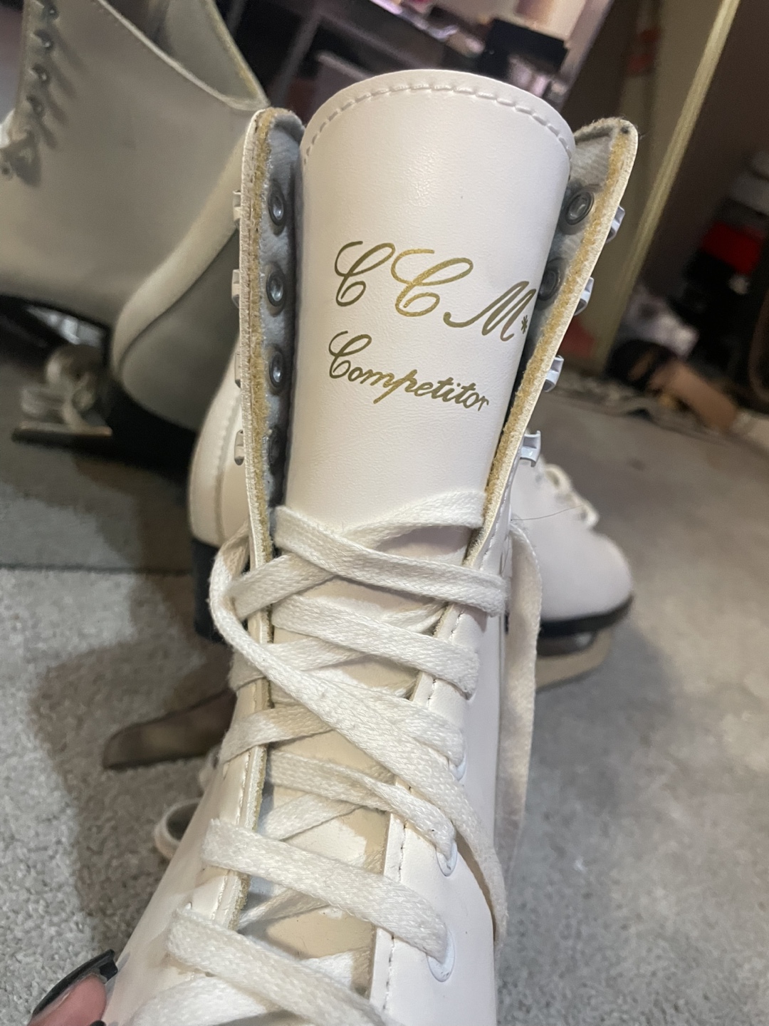 1 / 61 / 6Buy & SellCCM Competitor Figure Skates Size 8CCM Competitor Figure Skates Size 8$30White figure skates. Lace-up style. Size 8ConditionLike newWHERE TO MEETCheck LocationView MapSELLERverifiedJadeLeslieville1448 reviews6 chats·2 favorites·54 viewsSEND CHAT TO SELLERHi Jade! I’m interested in your listing.Hi Jade! I’m interested in your listing.Get the Karrot app to chatSign In to chat