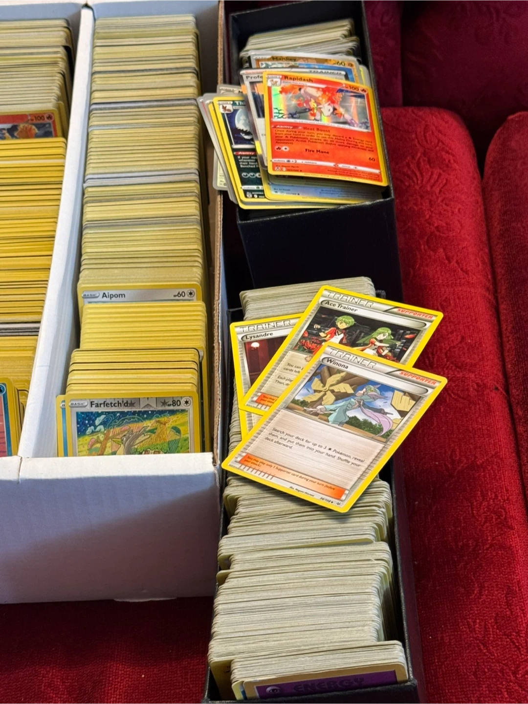 Massive collection of Pokémon trading cards, including booster bundles and display boxes. Features cards from various sets like Mega Evolution and Burning Shadows. This is a great starter collection for any Pokémon fan!